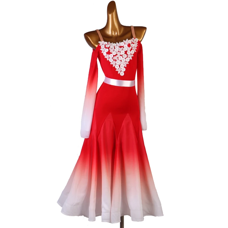 CACARE платья для конкурса бальных танцев женское платье вальс стандартные платья для танцев на заказ D0839 Пышный рукав большой подол с поясом
