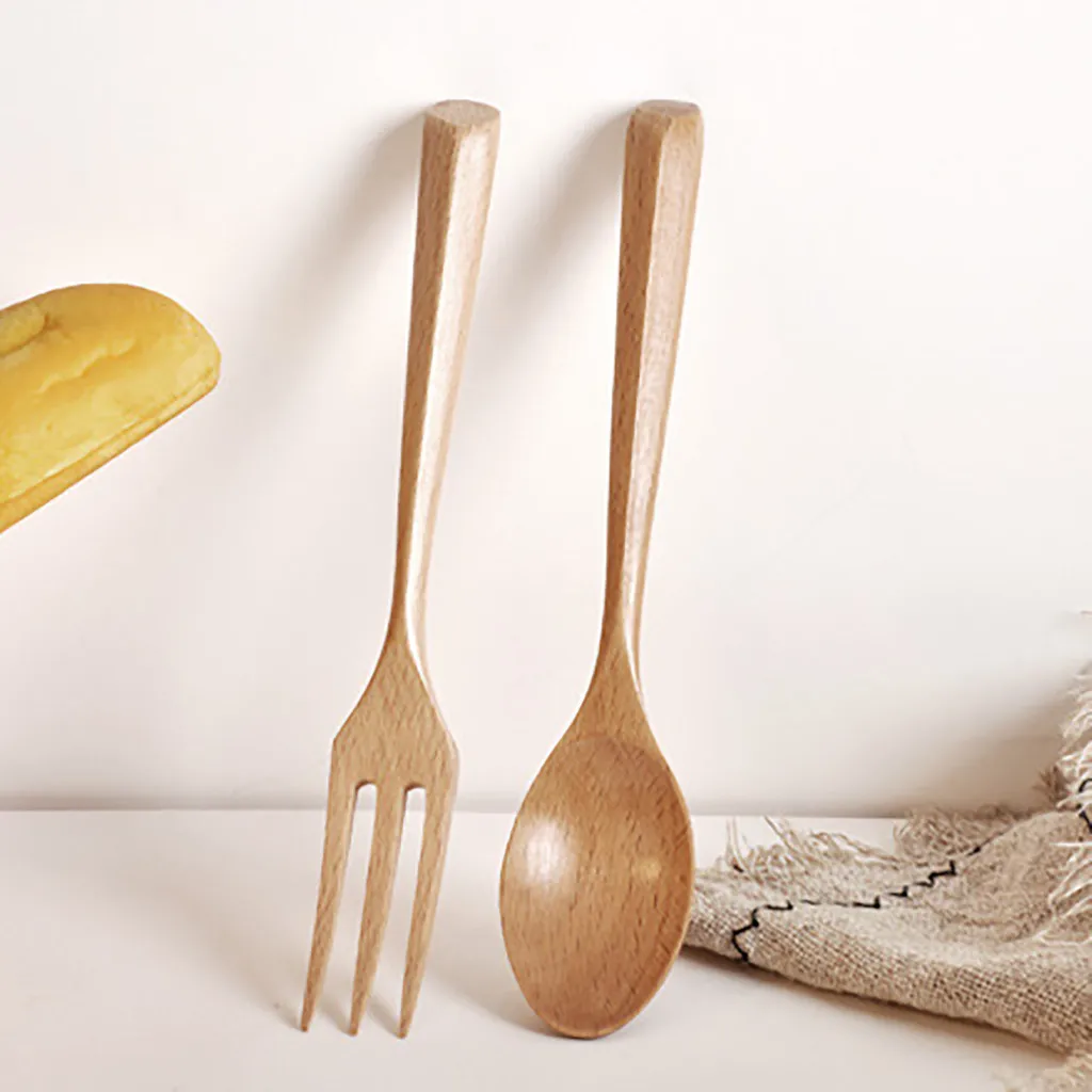 Портативная деревянная многоразовая вилка Ложка столовые приборы набор посуды натуральный сплошной цвет