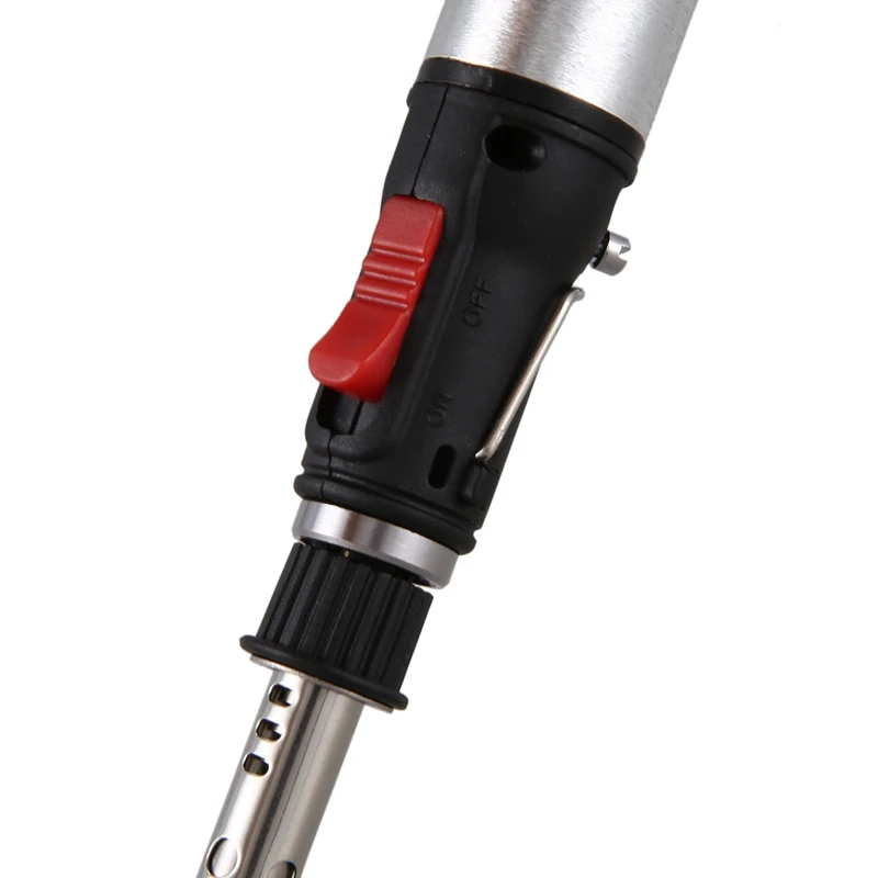 Очень легко заполнять газ через отверстие для наполнения газа в нижней части нашей паяльной ручки. После заполнения газа, вы можете использовать его, нажав кнопку ВКЛ/ВЫКЛ.