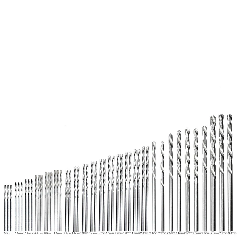 Размеры: 0,5 мм, 0,6 мм, 0,7 мм, 0,8 мм, 0,9 мм, 1,0 мм (3 штуки каждого, всего 18 шт.); 1,1 мм, 1,2 мм, 1,3 мм, 1,4 мм, 1,5 мм, 1,6 мм, 1,7 мм, 1,8 мм, 1,9 мм, 2,0 мм (2 шт. каждого, всего 20 шт.); 2,1 мм, 2,2 мм, 2,3 мм, 2,4 мм, 2,5 мм, 2,6 мм, 2,7 мм, 2,8 мм, 2,9 мм, 3,0 мм (1 шт. каждого, всего 10 шт.)