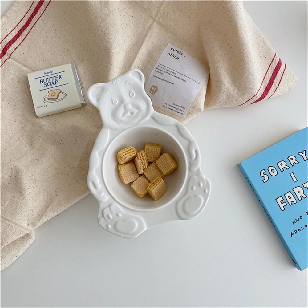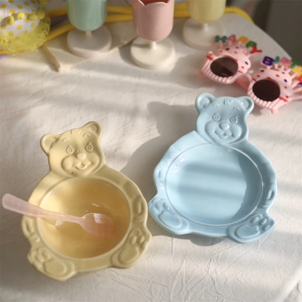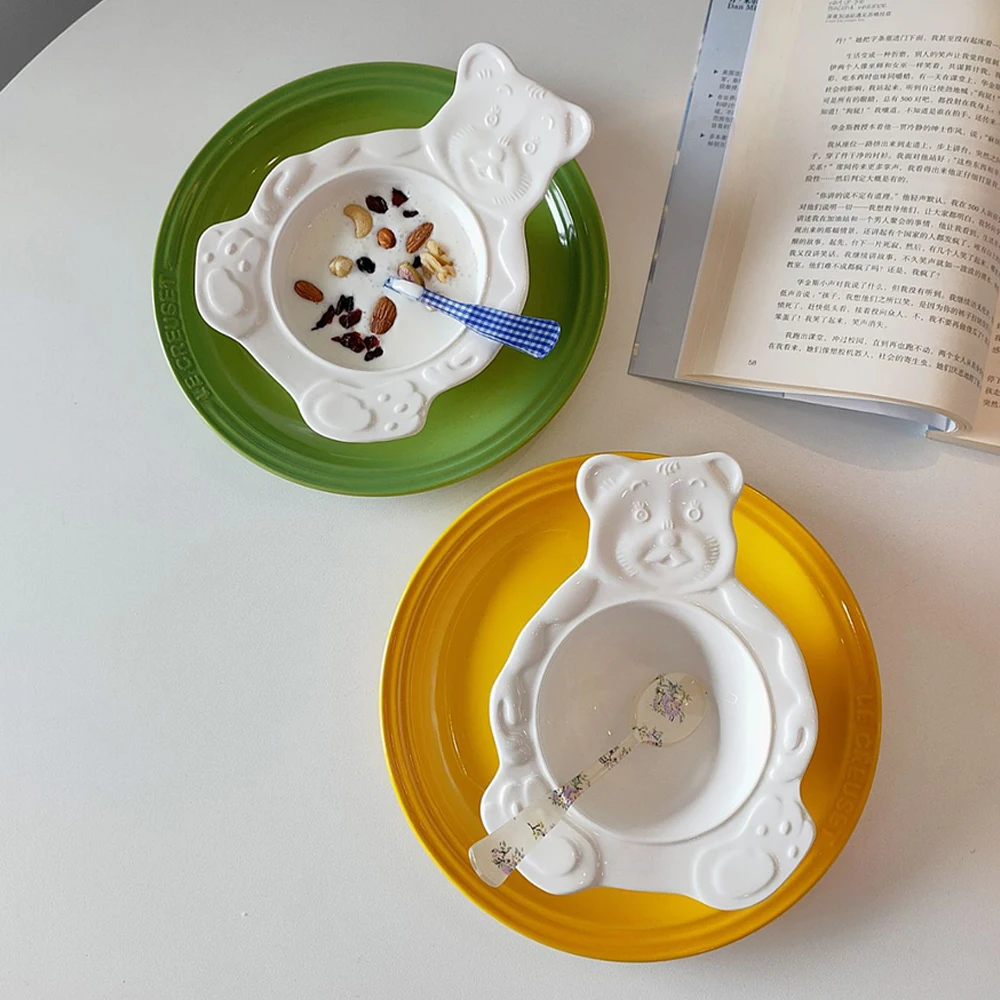 Мультяшный медведь, десертные чашки-тарелки, милые керамические обеденные блюда, корейские Ins, медвежонок, десерт, плоская миска для супа, завтрак, салат, фруктовый поднос 35