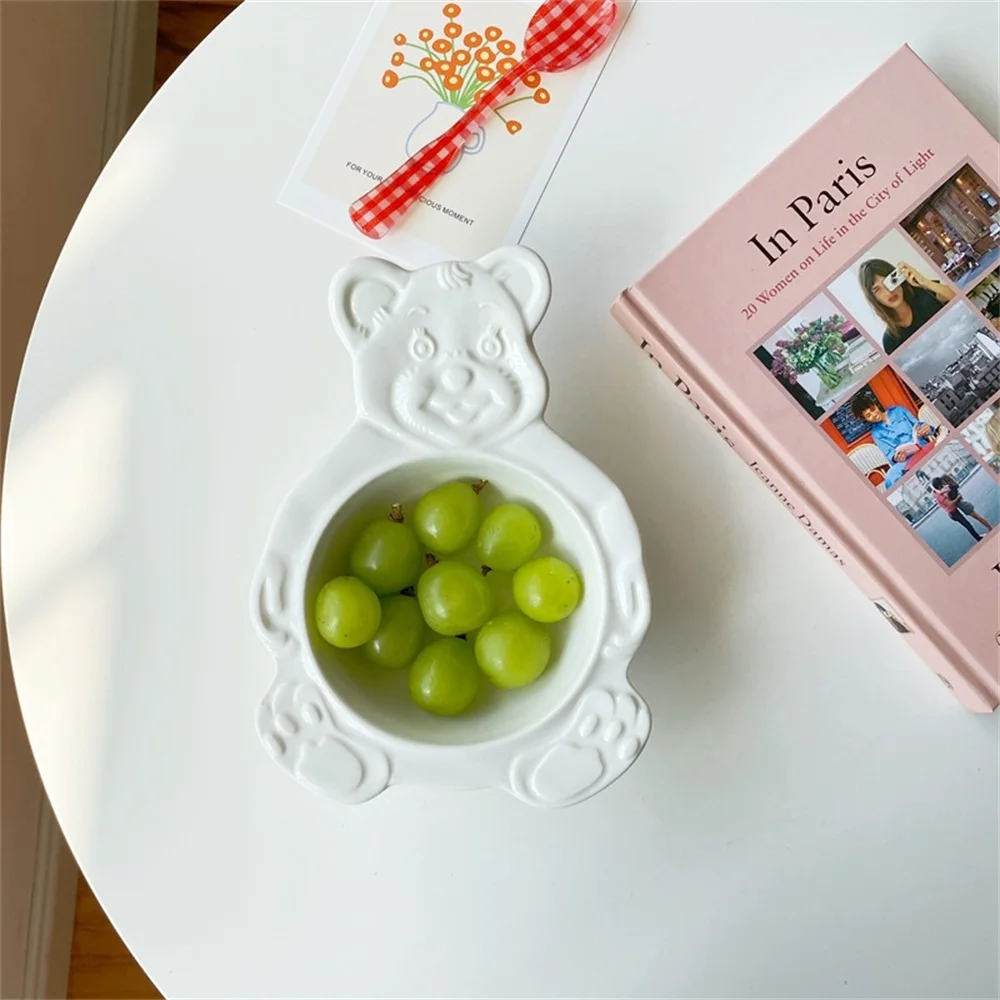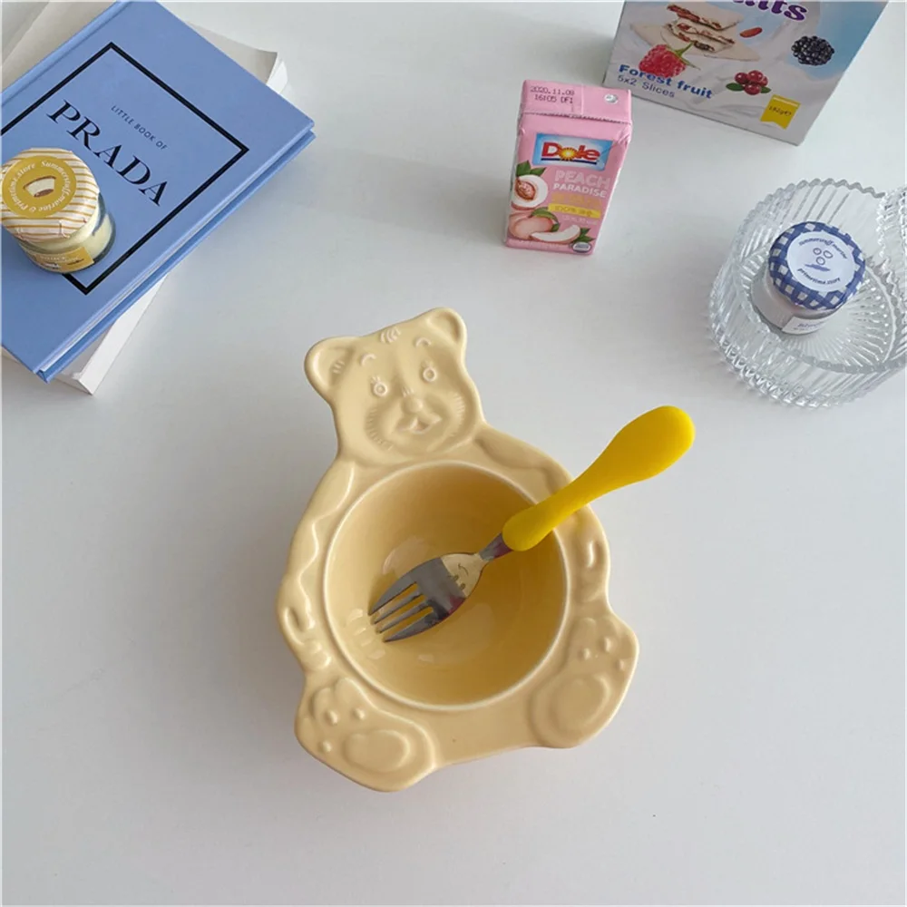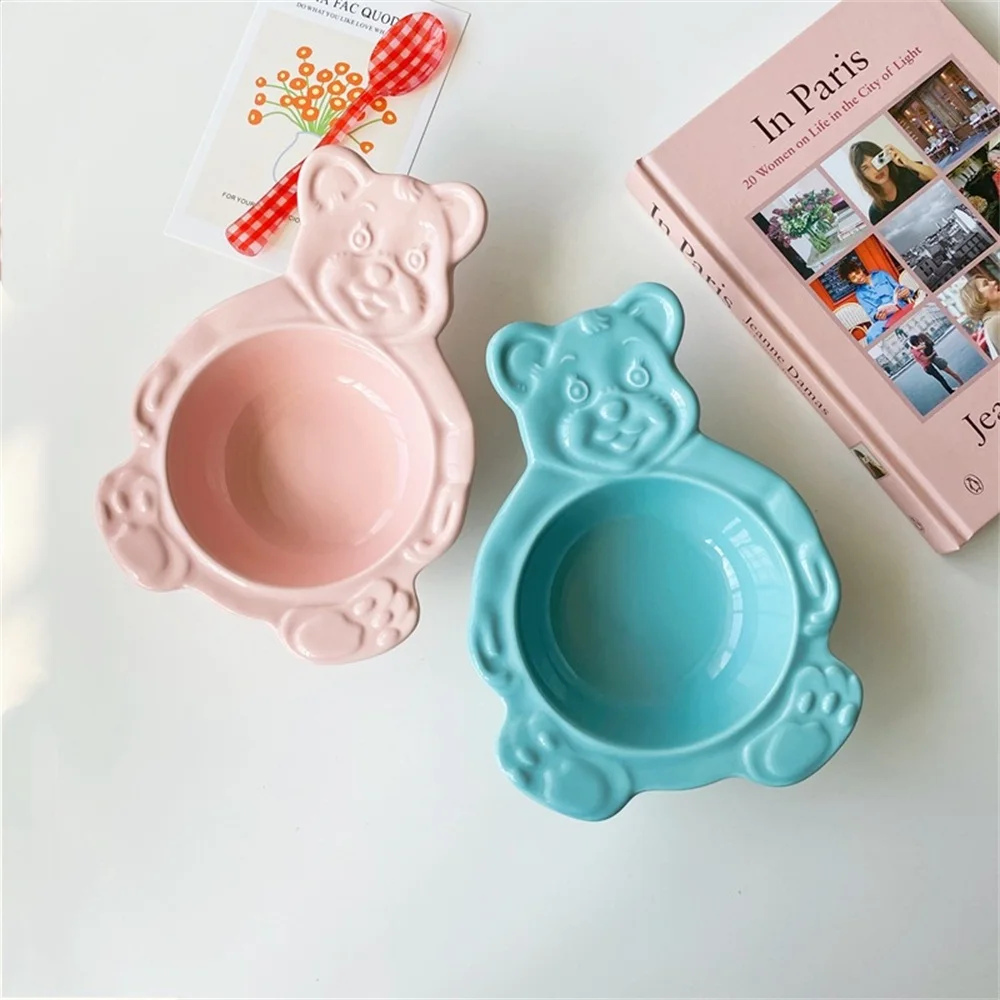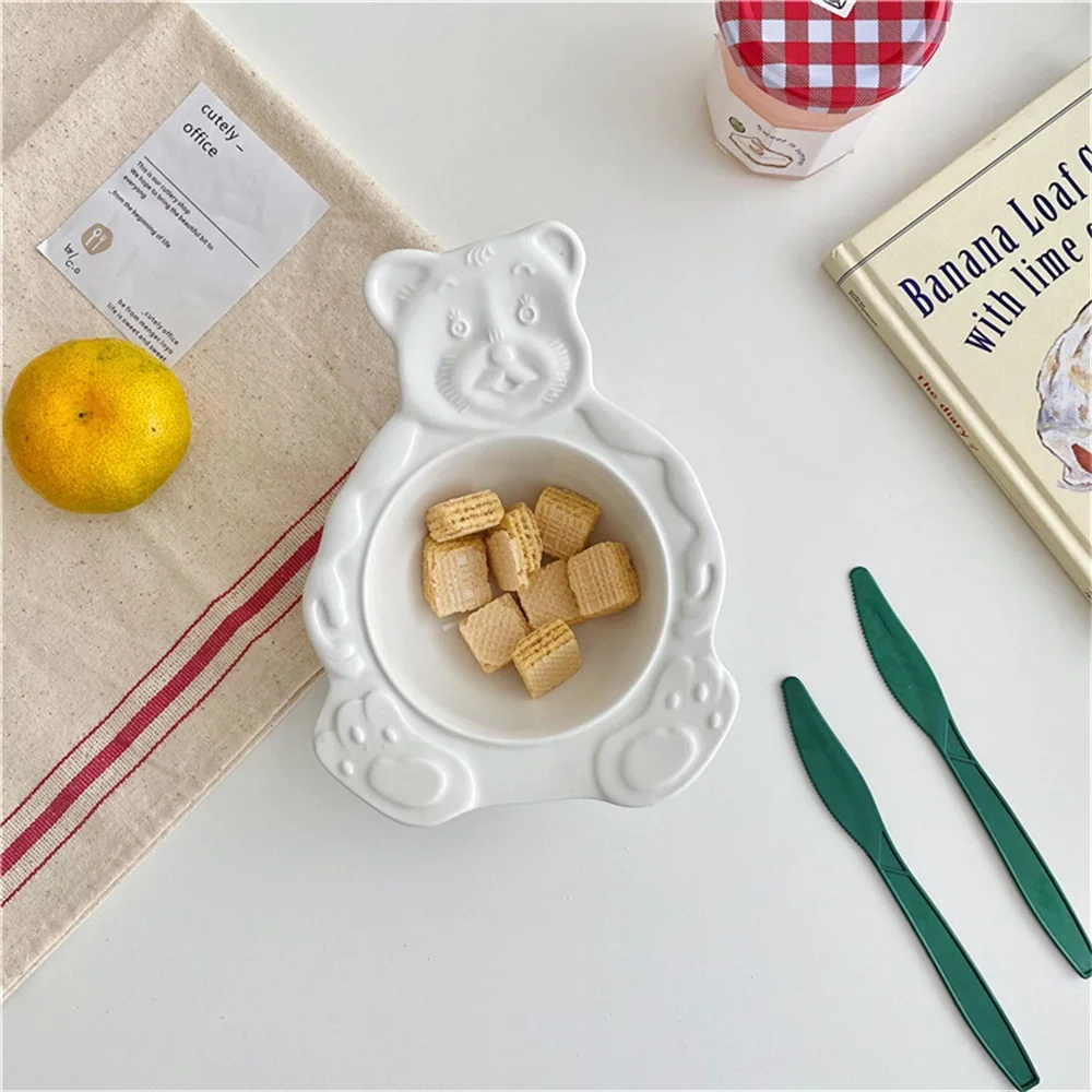 Мультяшный медведь, десертные чашки-тарелки, милые керамические обеденные блюда, корейские Ins, медвежонок, десерт, плоская миска для супа, завтрак, салат, фруктовый поднос 35