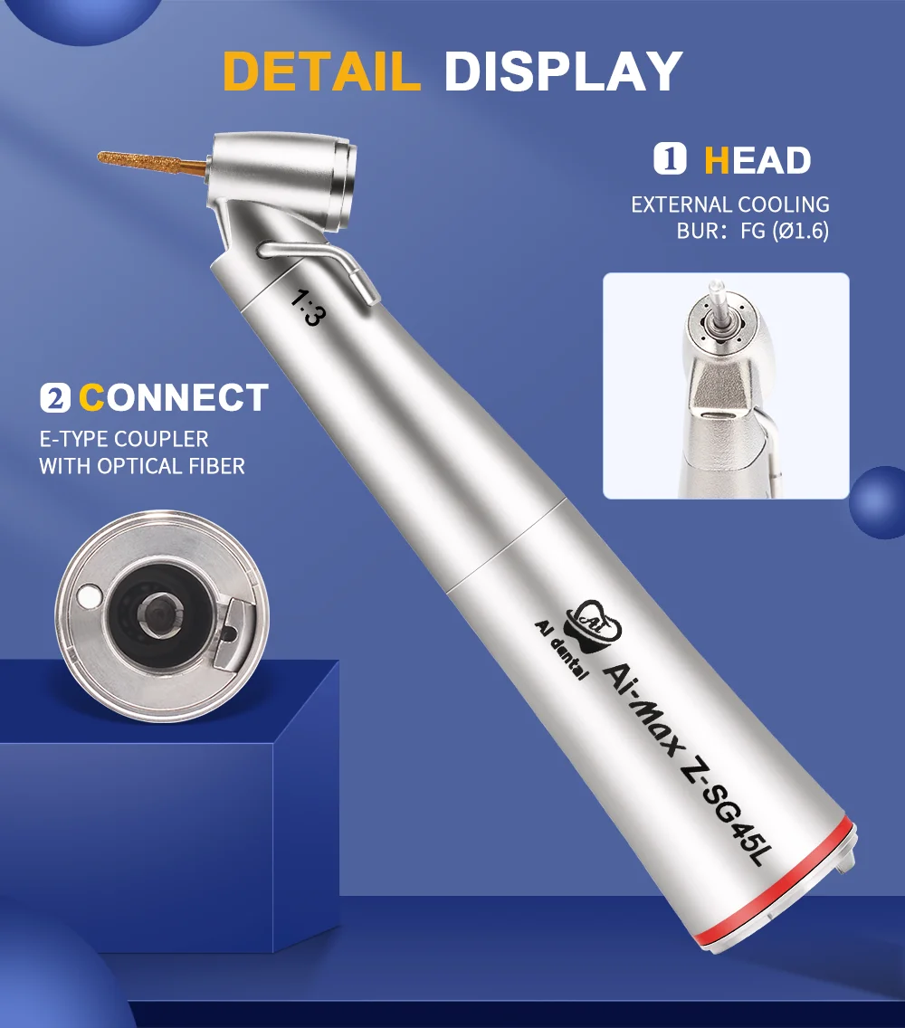 1. 1:5 увеличения скорости. Для FG burs (ø1.6) . Корпус из нержавеющей стали