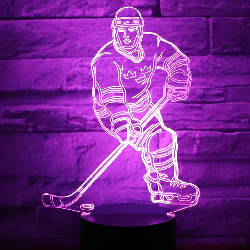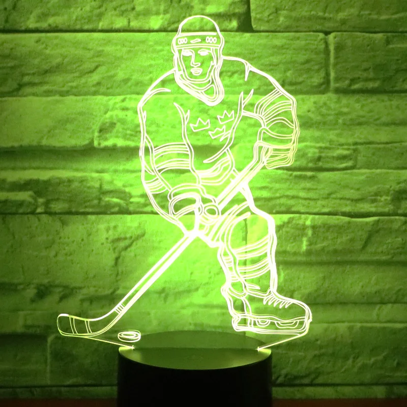 Удивительный 3D светодиодный светильник в форме хоккея, светодиодный ночник с 7 волшебными цветами