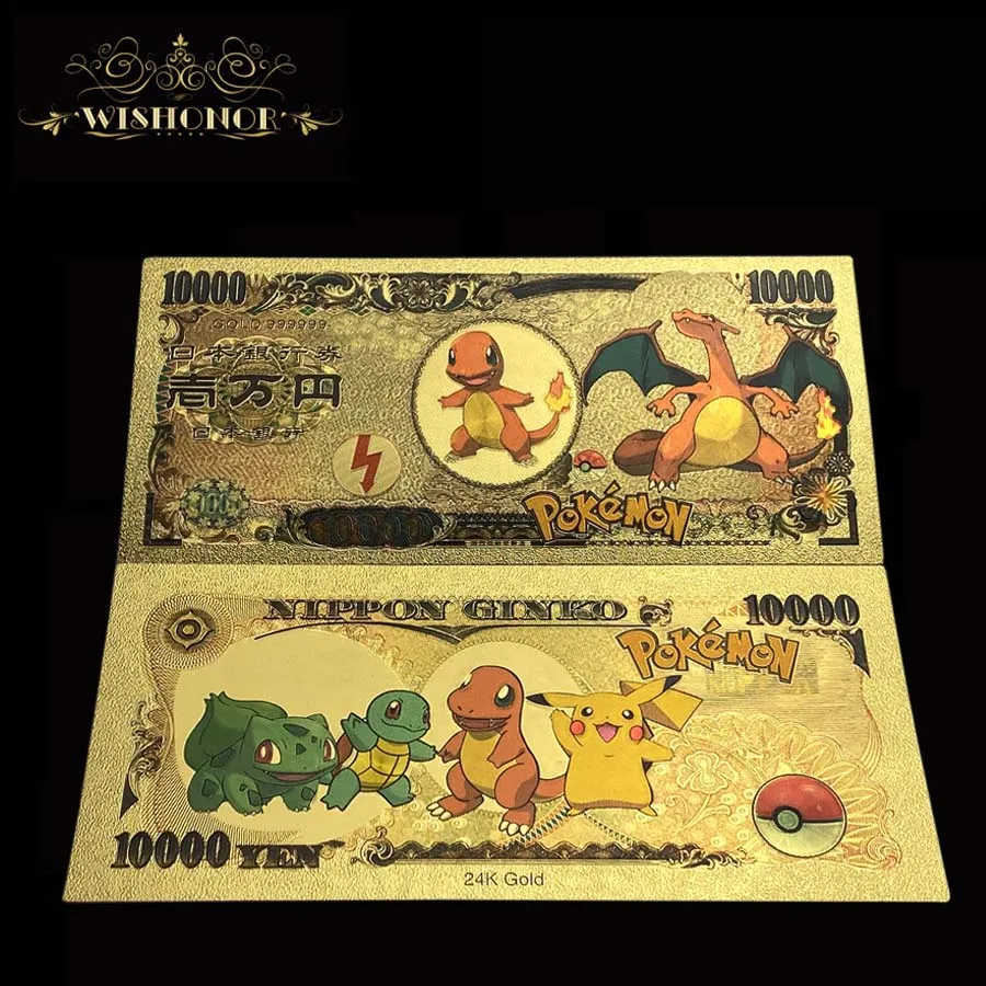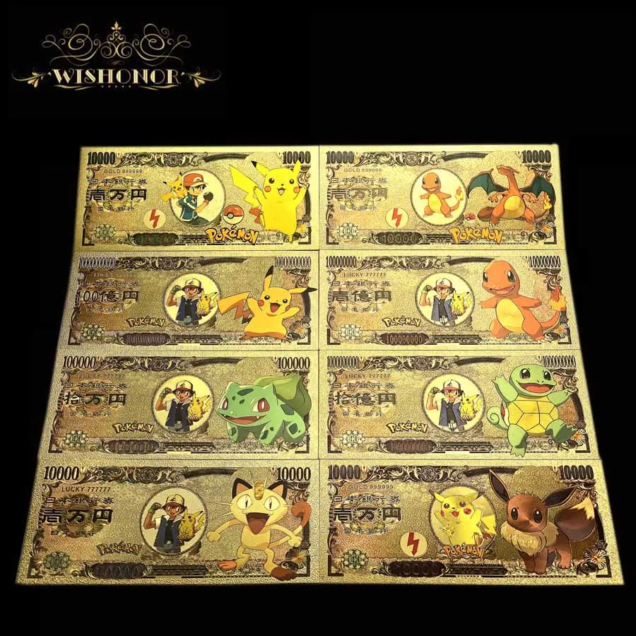 Название:10 шт./лот Япония золото 999 Покемон банкноты аниме банкноты 10000 иен банкноты в 24k позолоченные золотые деньги для сбора