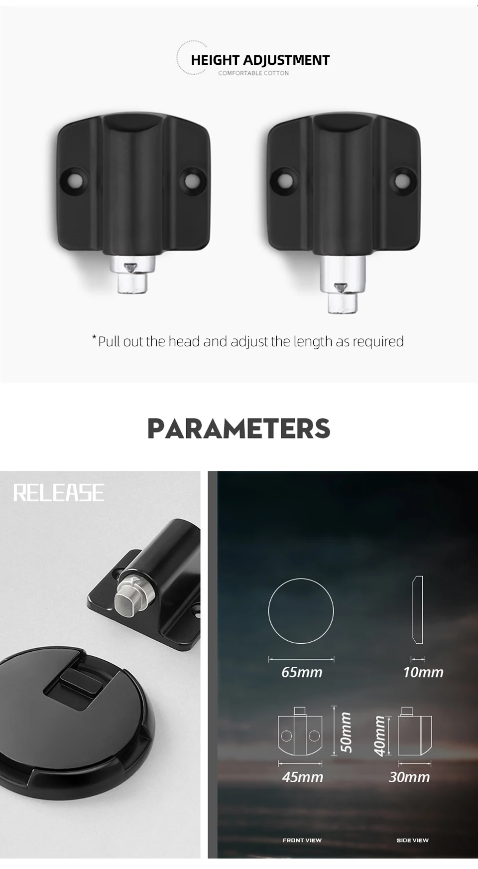 Adjustable height, for 12-30mm door gap.