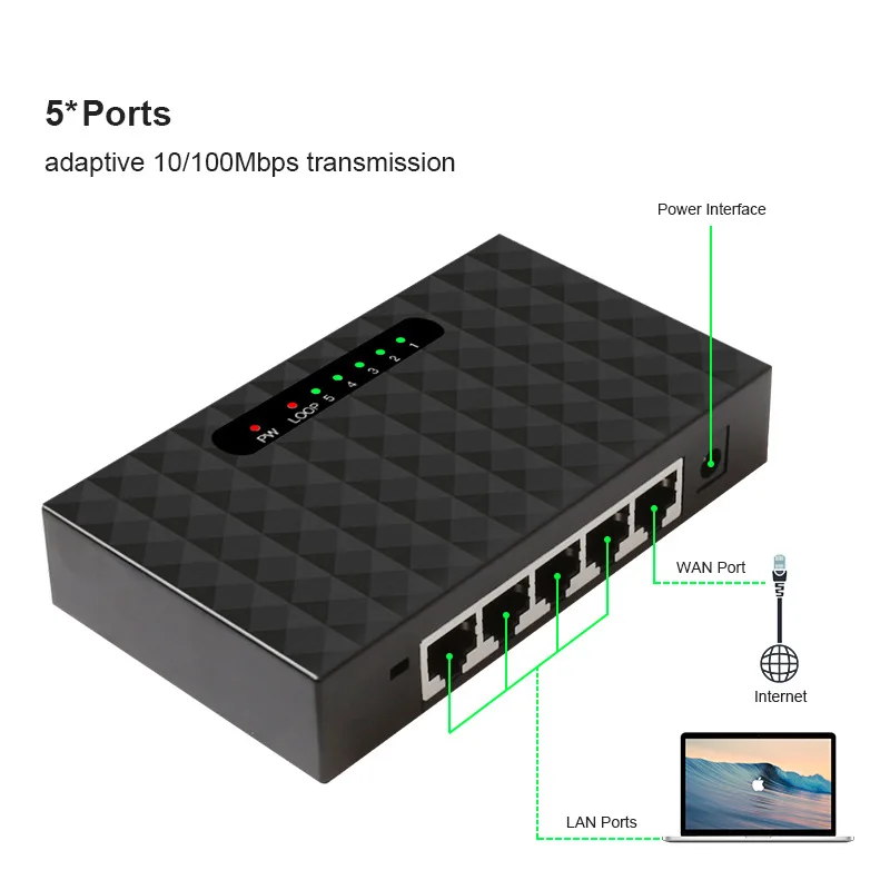 5 Порты и разъёмы Сетевой коммутатор 10/100 Мбит/с