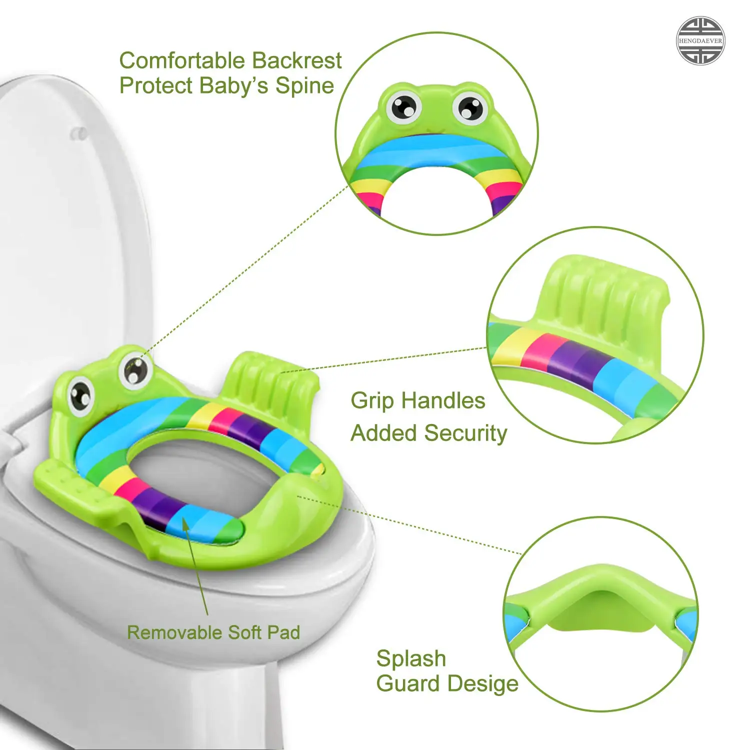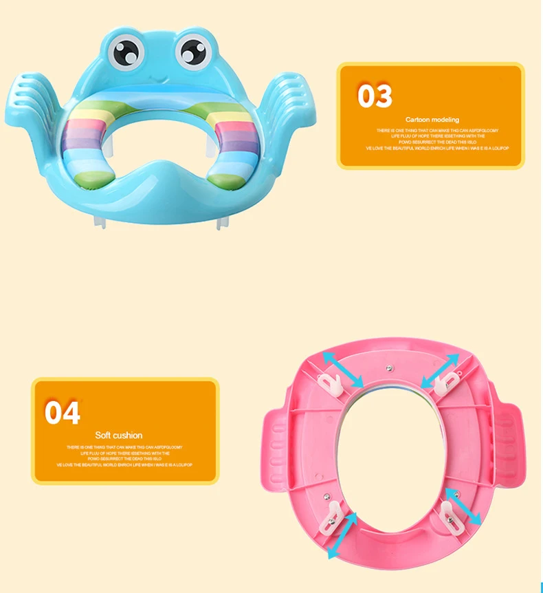 Высококачественное Качество: детское сидение для обучения горшку использует экологически чистые пластиковые материалы. Достаточно безопасно для детей 1-6 лет. Надежное и удобное: тренировочное сиденье с ручками имеет мягкую подушку и спинку. Также есть 4 Нескользящие и регулируемые полоски, чтобы избежать скольжения. Встроенная защита от брызг мочи: тренировочное сиденье-хороший выбор для мальчиков и девочек в качестве унитаза для предотвращения утечки из туалета, особенно для маленьких мальчиков. Универсальная совместимость: наше сиденье для унитаза подходит для большинства стандартных домашних и гостиничных туалетов, за исключением квадратных или некоторых высокотехнологичных туалетов. Легко смывать и держать в чистоте: вы можете легко открутить коврик от горшечного тренировочного сиденья и легко мыть крышку унитаза.