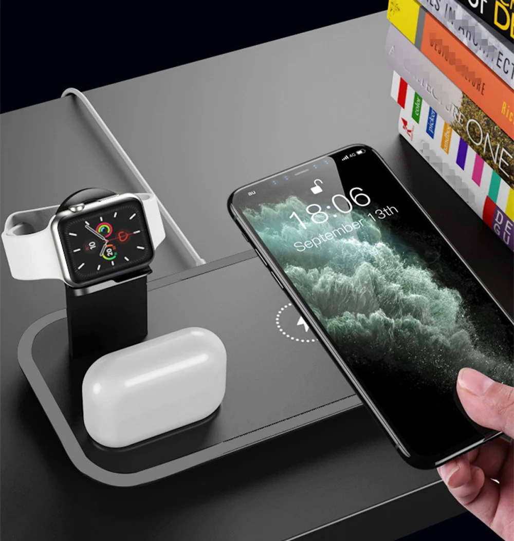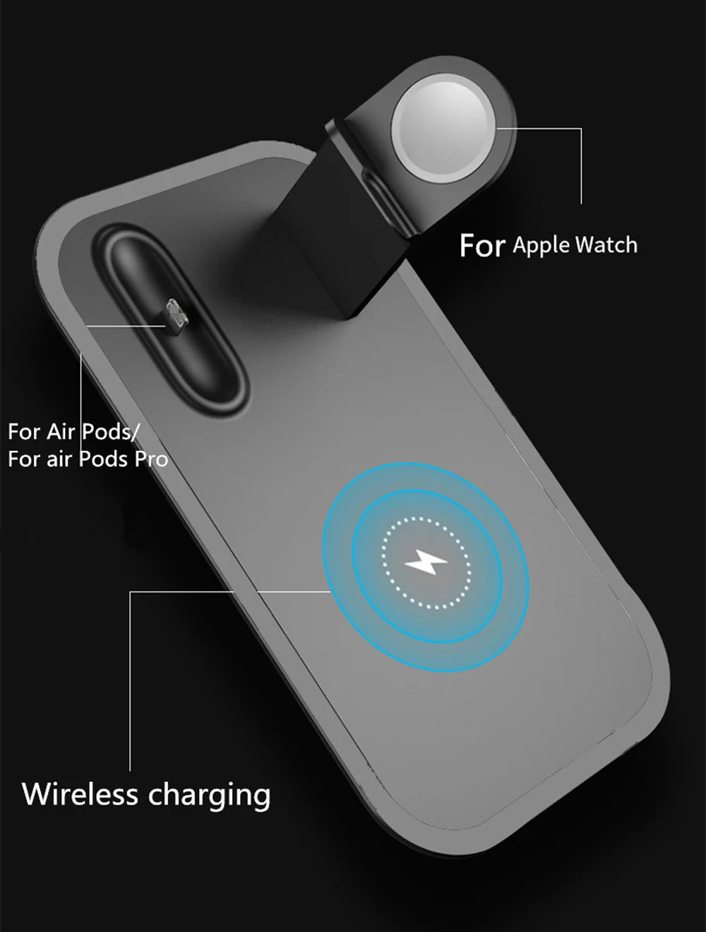 Этот 3-в-1 Беспроводное зарядное устройство поддерживает смарт-телефон и подходит для наручных часов apple Watch 2/3/4/5. Он может заряжать телефон, Смарт-часы, наушники в то же время, чтобы сэкономить ваше время.