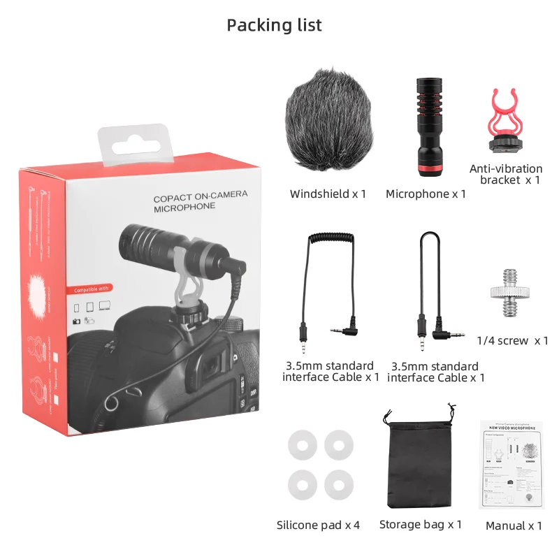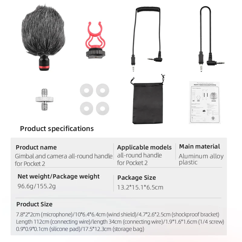 1. Легкий и портативный, вы можете напрямую связать микрофон с карманом 2 карданного устройства камеры,