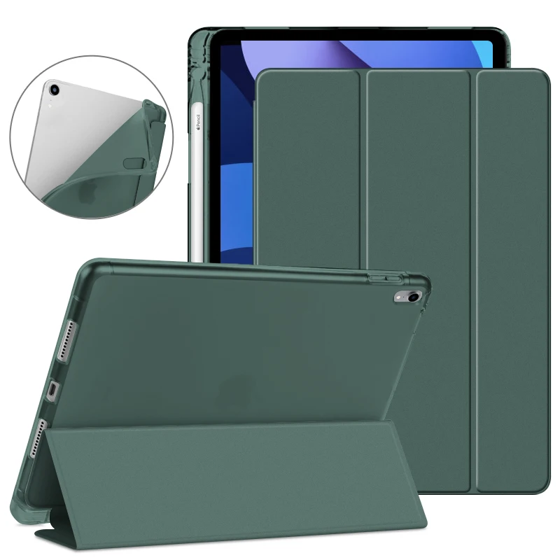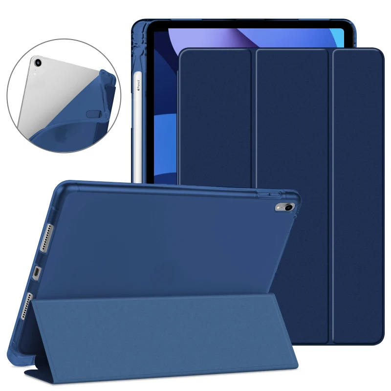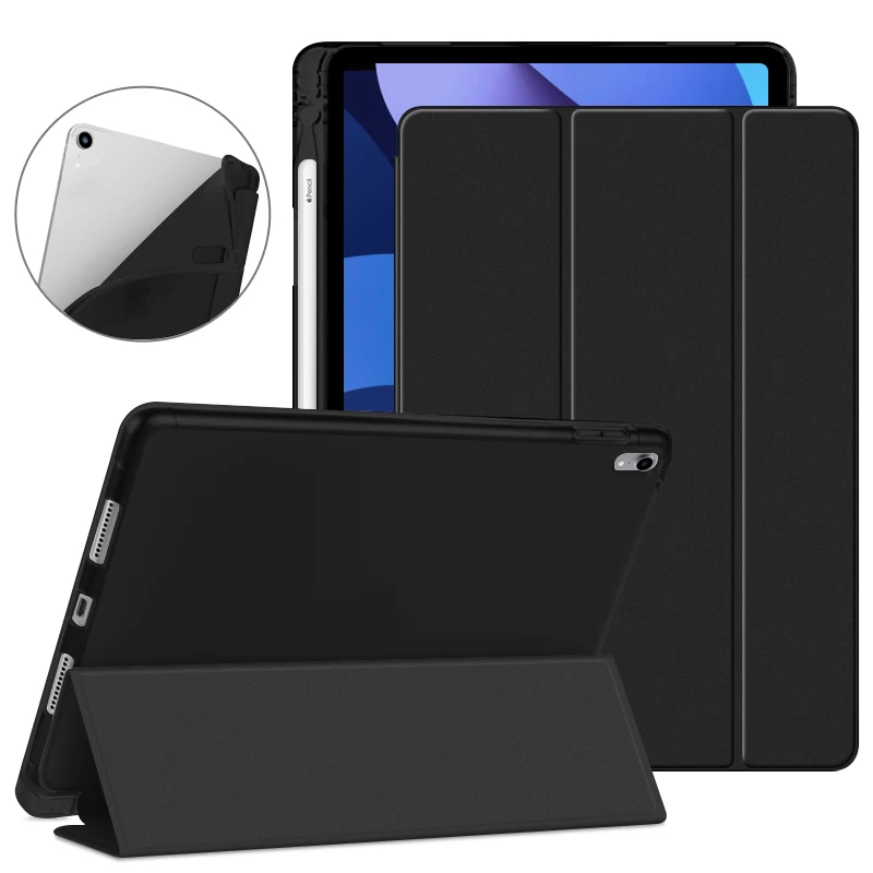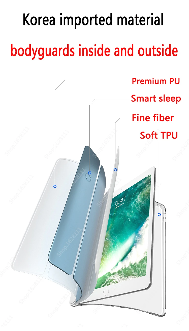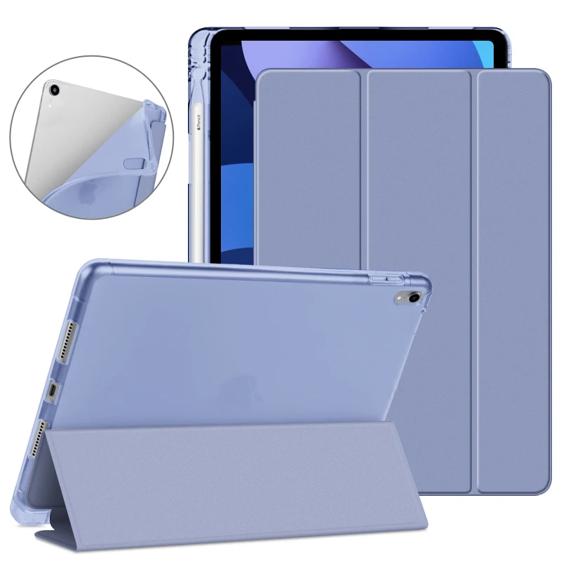 Передняя трехслойная смарт-крышка изготовлена из полиуретана и мягкого трогательного прорезиненного покрытия на внутренней стороне и внешней стороне задней оболочки, которая чувствует себя хорошо в руках и делает ее менее скользкой. Это цельный чехол, спереди и сзади не отделяется