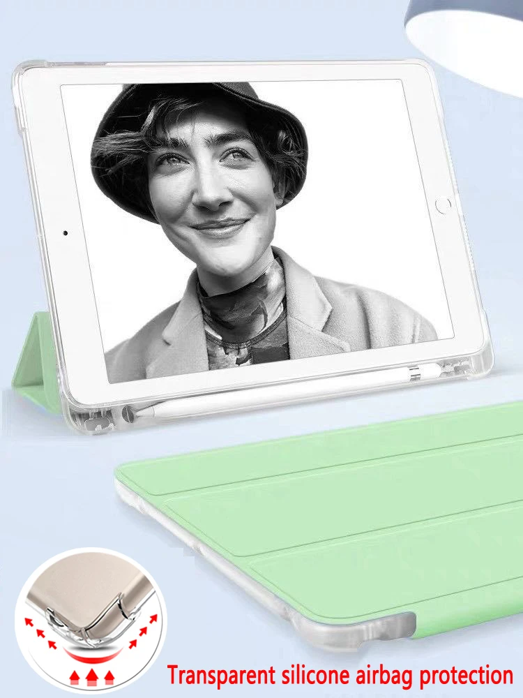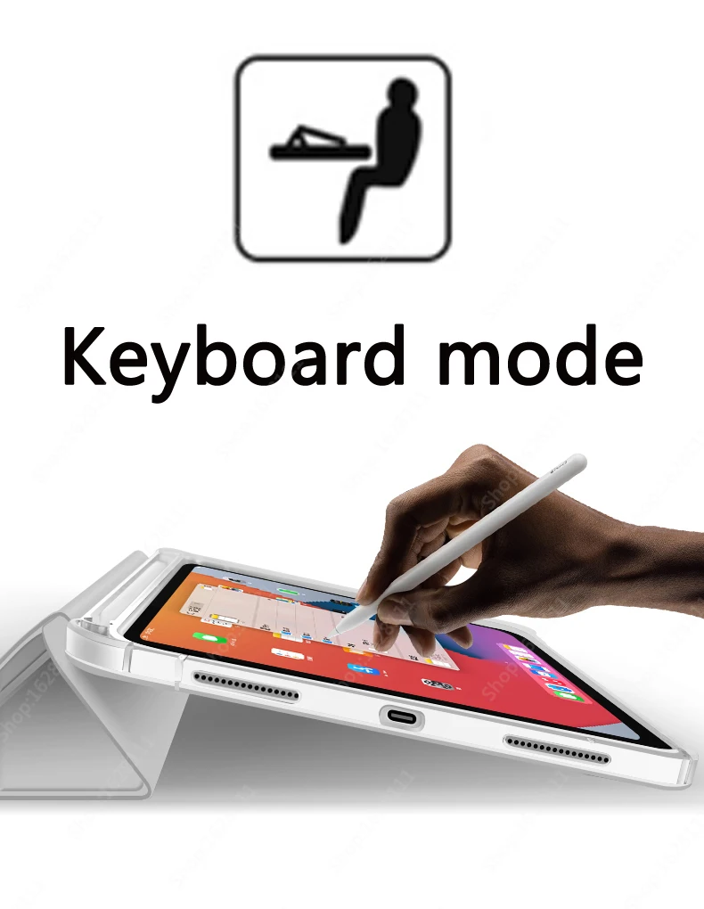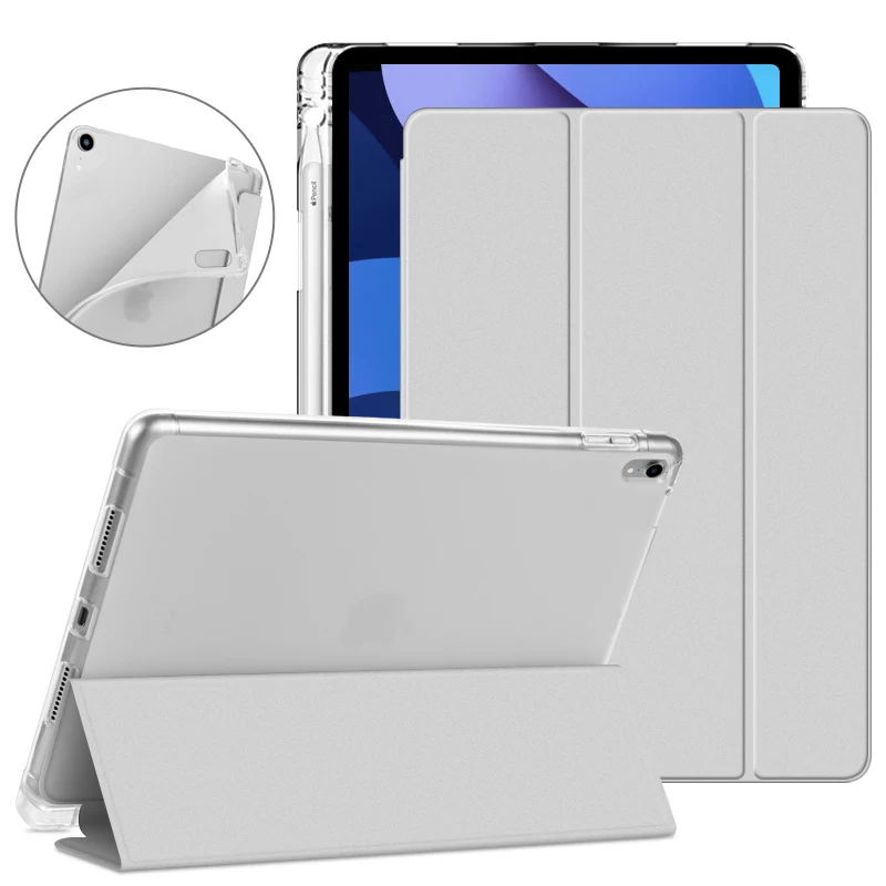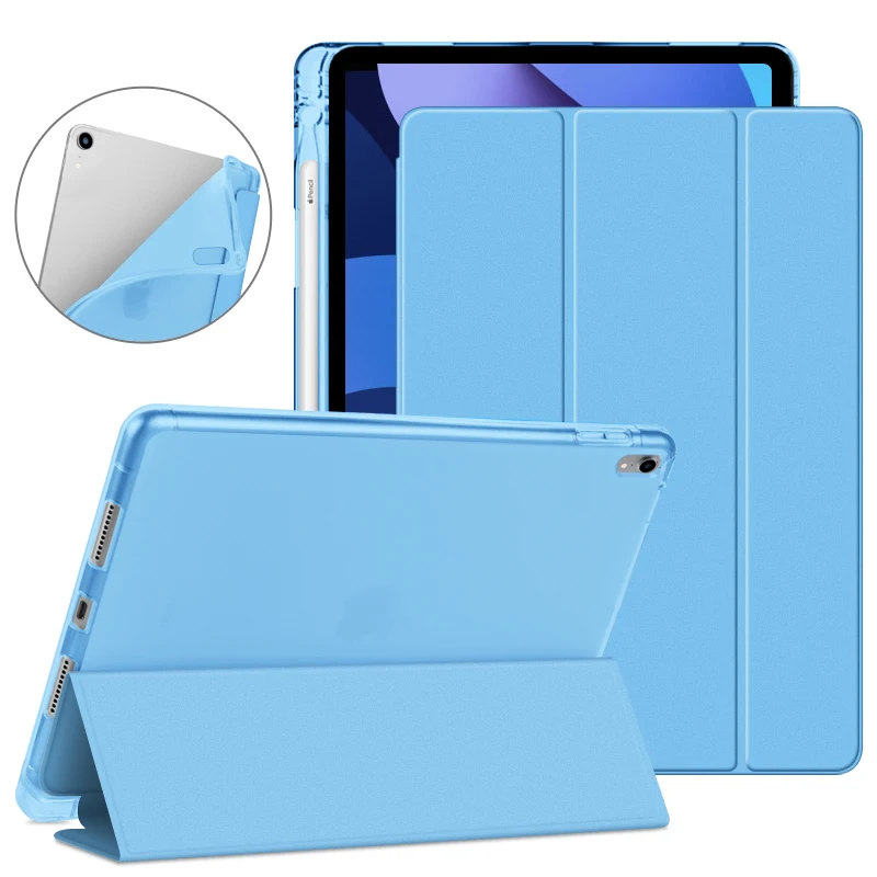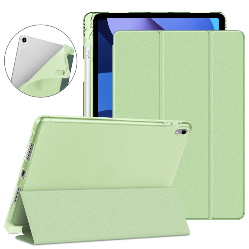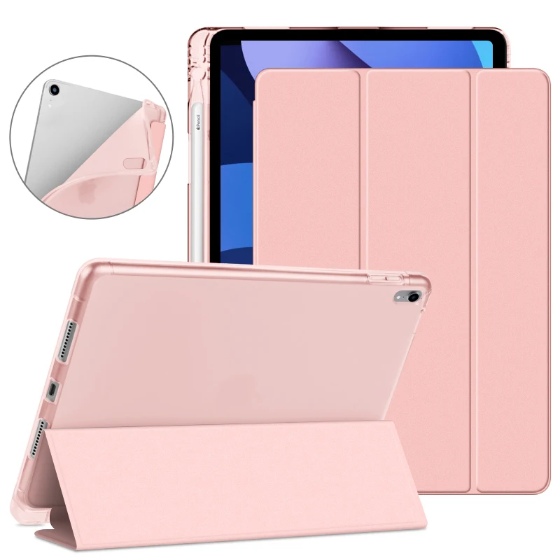 Передняя трехслойная смарт-крышка изготовлена из полиуретана и мягкого трогательного прорезиненного покрытия на внутренней стороне и внешней стороне задней оболочки, которая чувствует себя хорошо в руках и делает ее менее скользкой. Это цельный чехол, спереди и сзади не отделяется