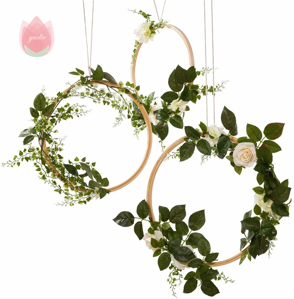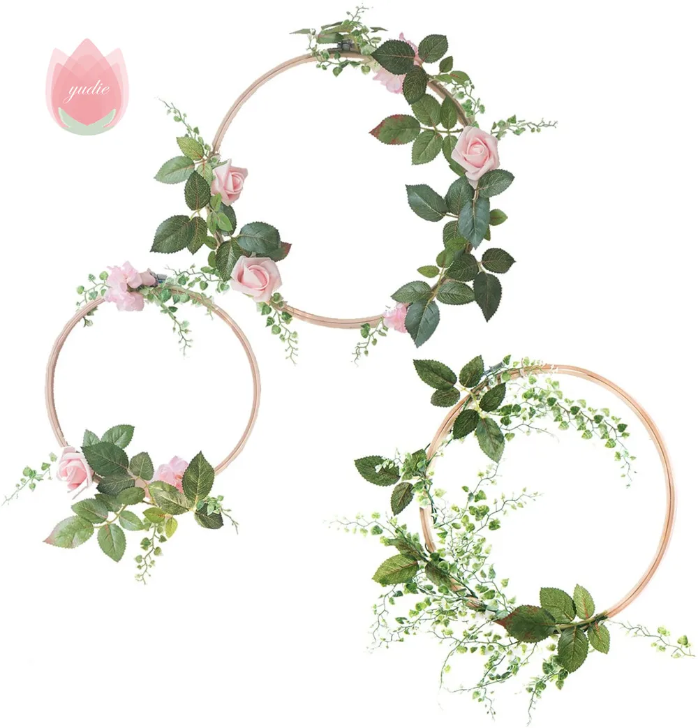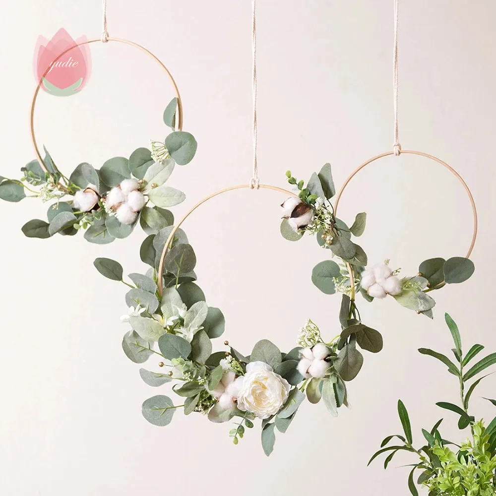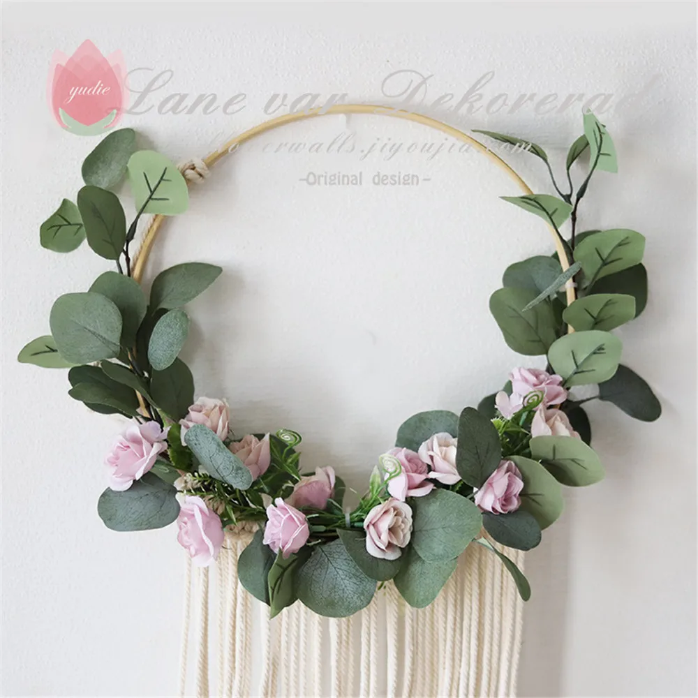 Wooden Hoops flower vine decor home Iron/Rattan wreath Wedding decoration Floral garland Dream catcher hoop Baby shower