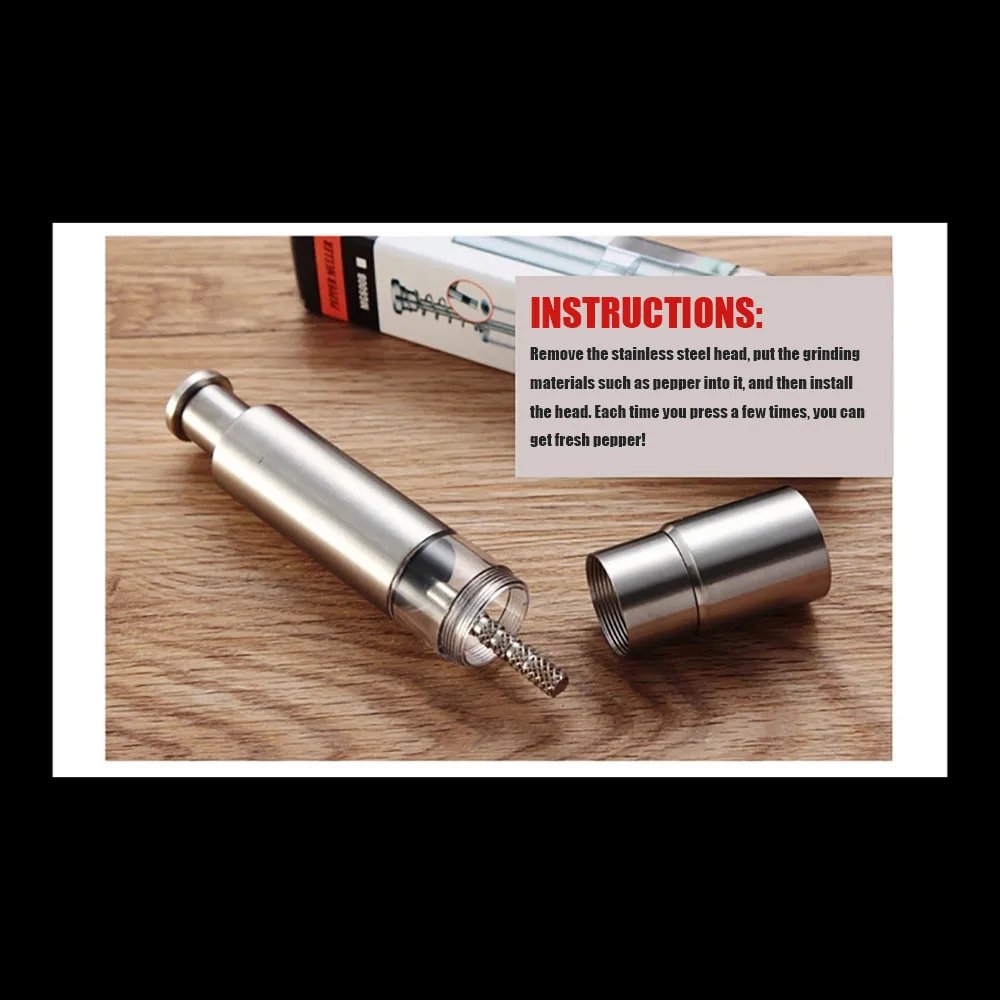 Перцовая шлифовальная машина изготовлена из нержавеющей стали и акрила с компактным размером, что позволяет легко хранить и путешествовать на кухне.