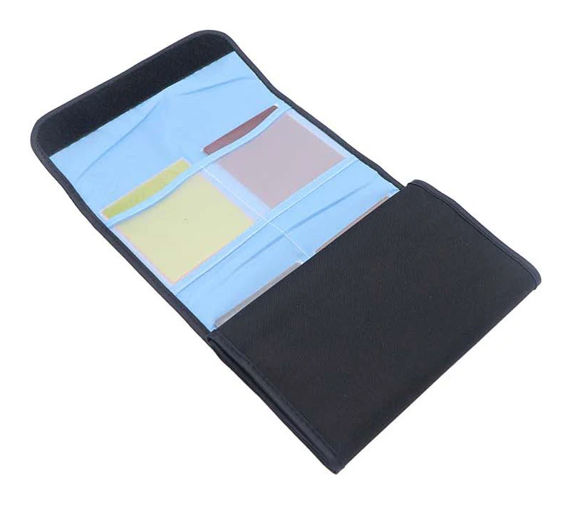 Описание: 1. Может вместить квадратный фильтр или круглый фильтр с максимальным диаметром 82 мм, организовать и сохранить несколько объективов фильтра. 2. Высокая емкость для удобного использования на открытом воздухе, легко вынимать и использовать. 3. Внутренний слой снабжен амортизирующим губчатым защитным фильтром, нейлоновый материал не повредит фильтр. 4. Защищает ваш фильтр объектива от пыли, встряхнуть и царапин, а также оснащена 6/8/10/12 отверстия, чтобы держать фильтр объектива. 5. Это больше удобства и легко во многих ситуациях съемки. Спецификация: Материал: нейлон Цвет: черный + синий Вместимость: 6/8/10/12 карманов Примечание: Фильтры в комплект не входят Пожалуйста, выберите правильный объем продукта перед заказом, емкость составляет 6/8/10/12 соответственно. Посылка включает в себя: 1 * сумка для хранения фильтров
