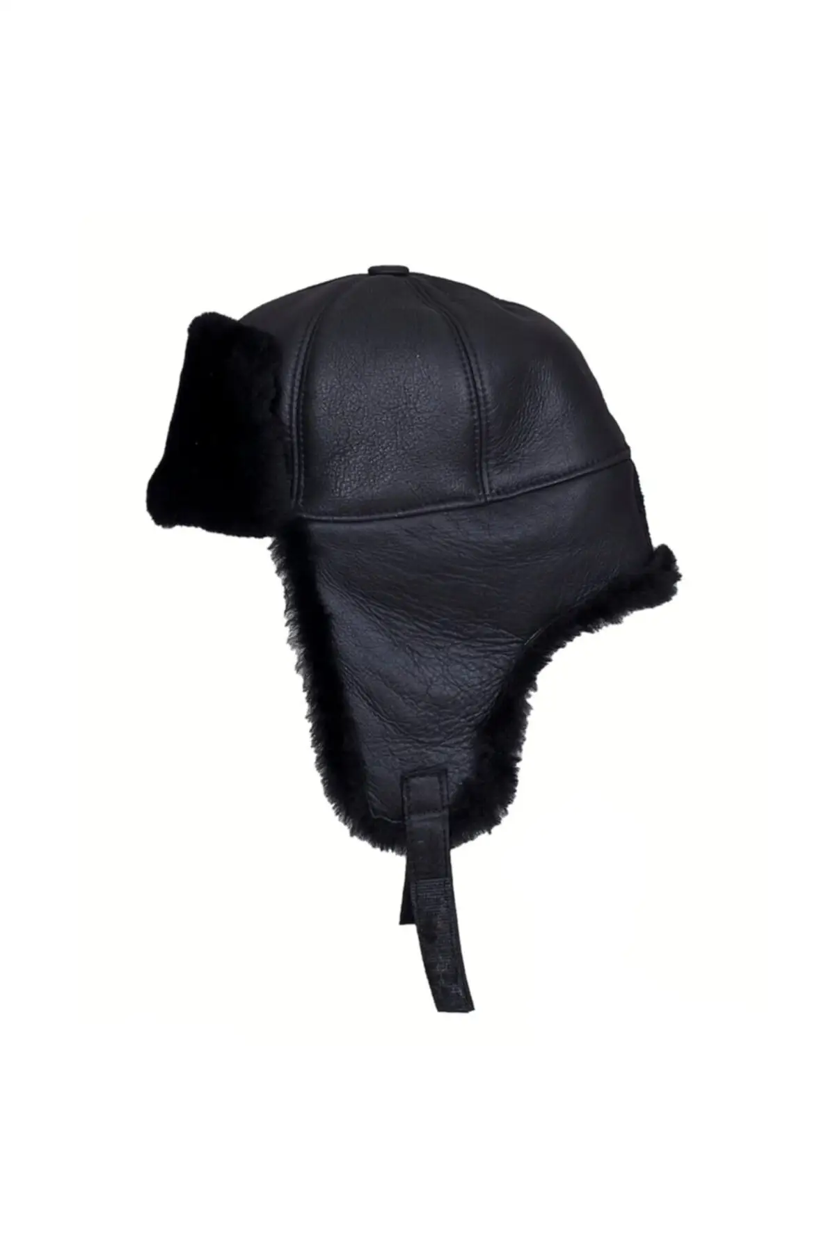 Внутренняя часть кожаной шапки, которая является нашим собственным производством, состоит из меха ягненка, а внешняя часть-из овечьей кожи.