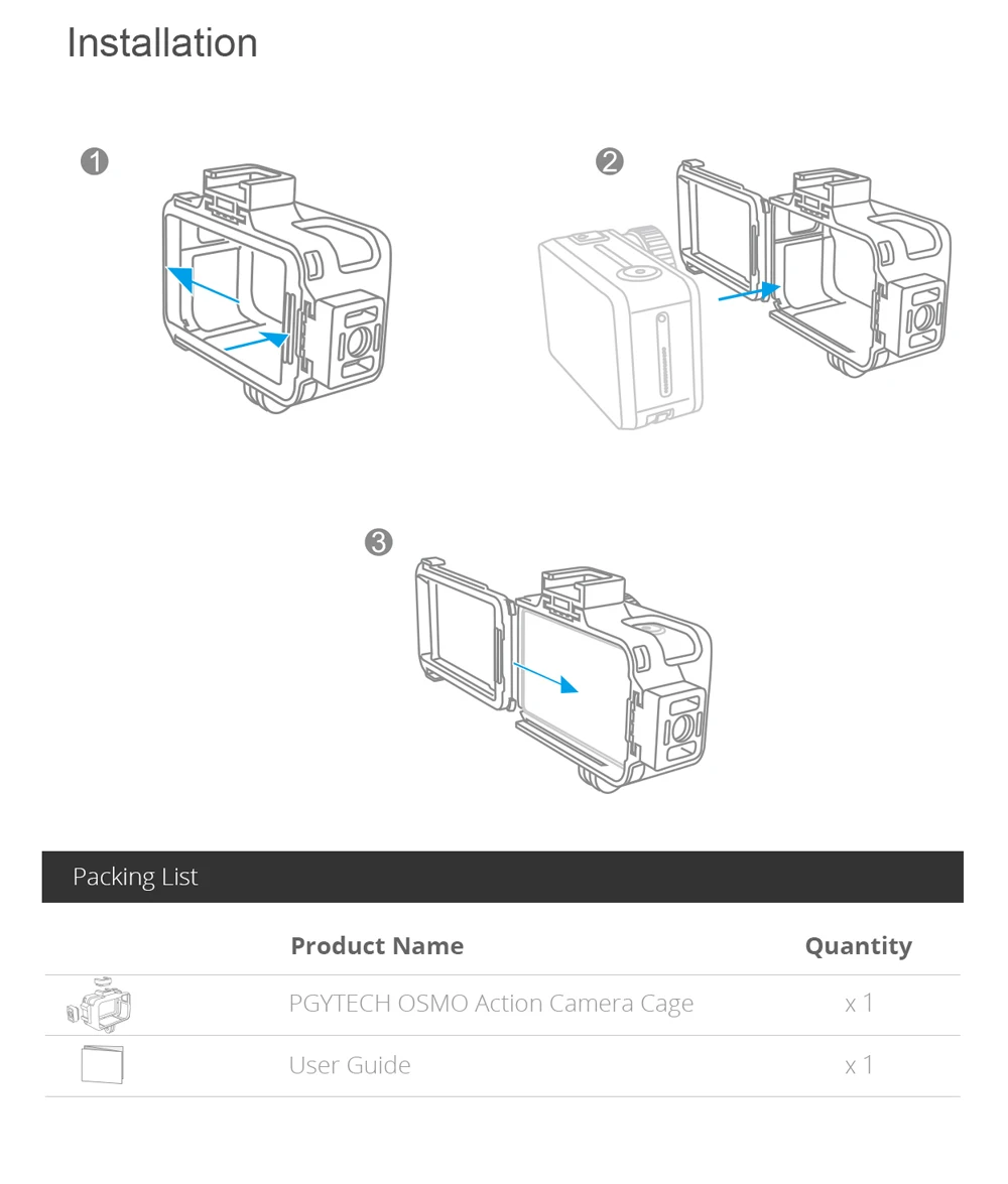 PGYTECH OSMO клетка для экшн-камеры x 1 Руководство пользователя x 1