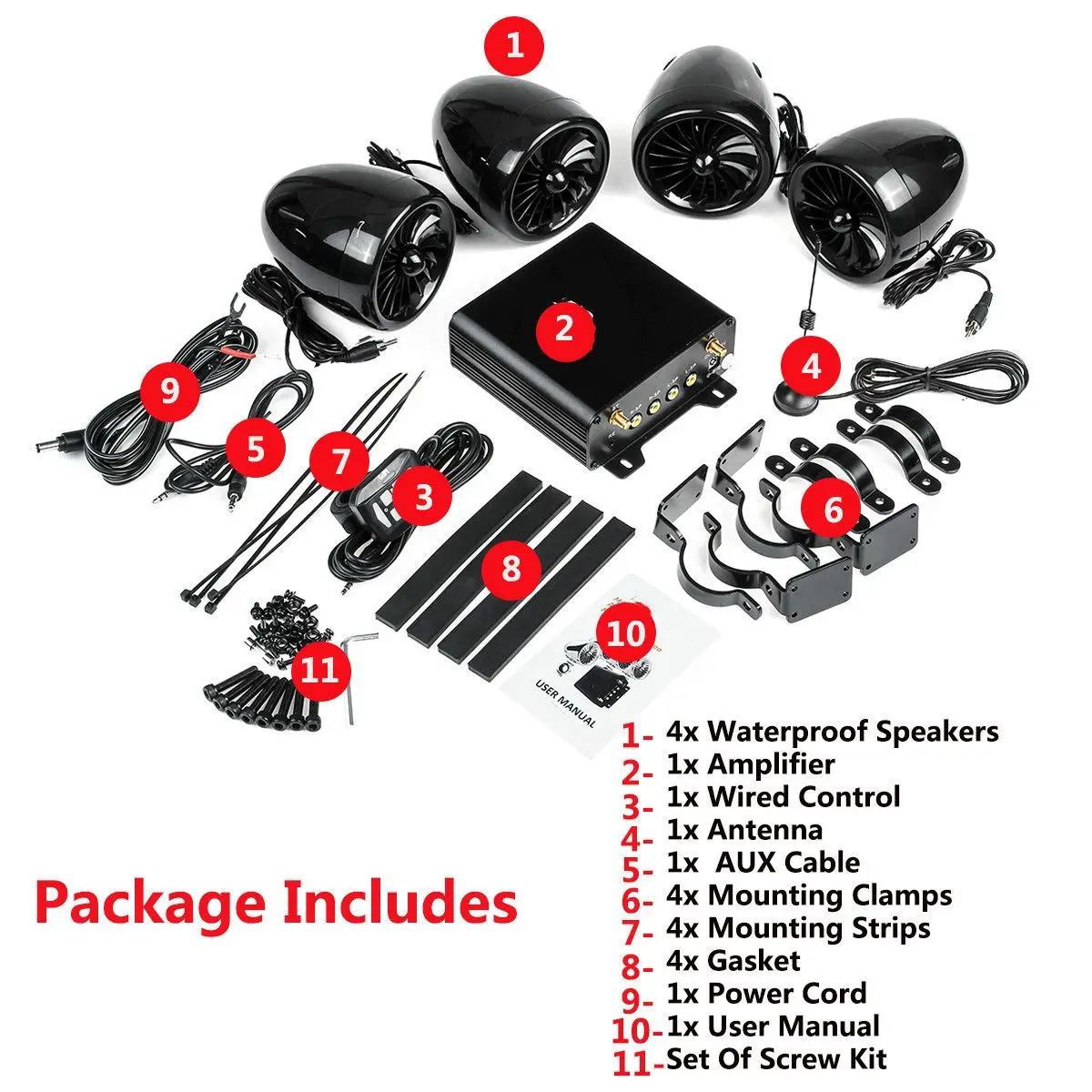 1000 Вт мотоцикл bluetooth 4 колонки аудио стерео система USB FM ATV UTV