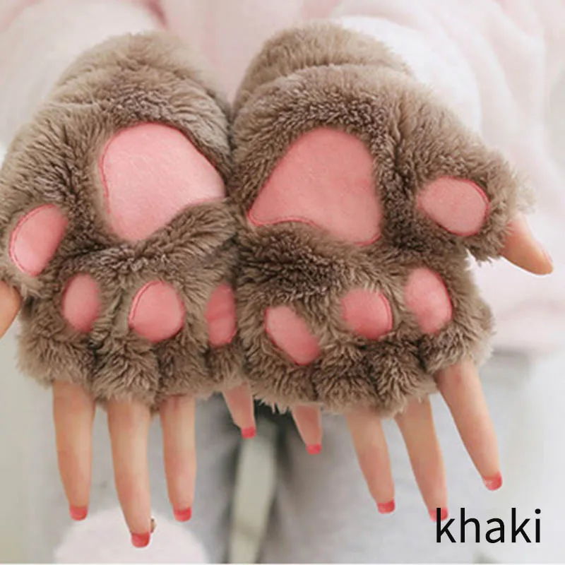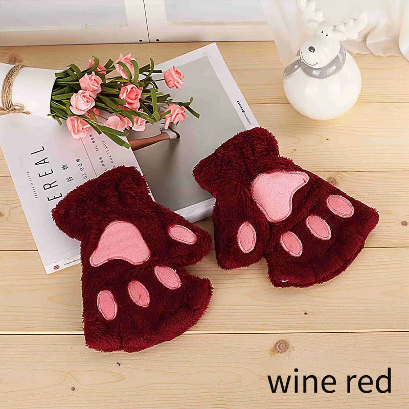 Модные и милые плюшевые перчатки с полупальцами из мультфильма сделают вас более красочными зимой