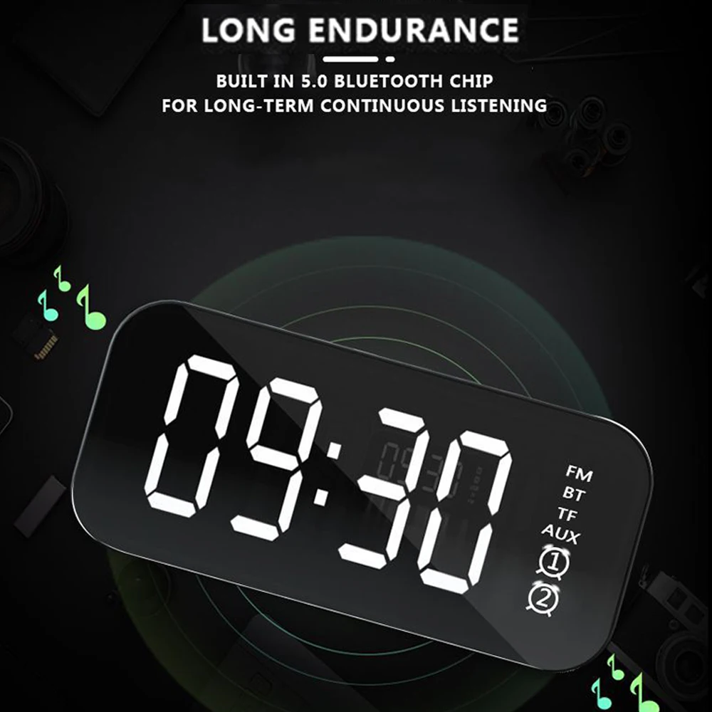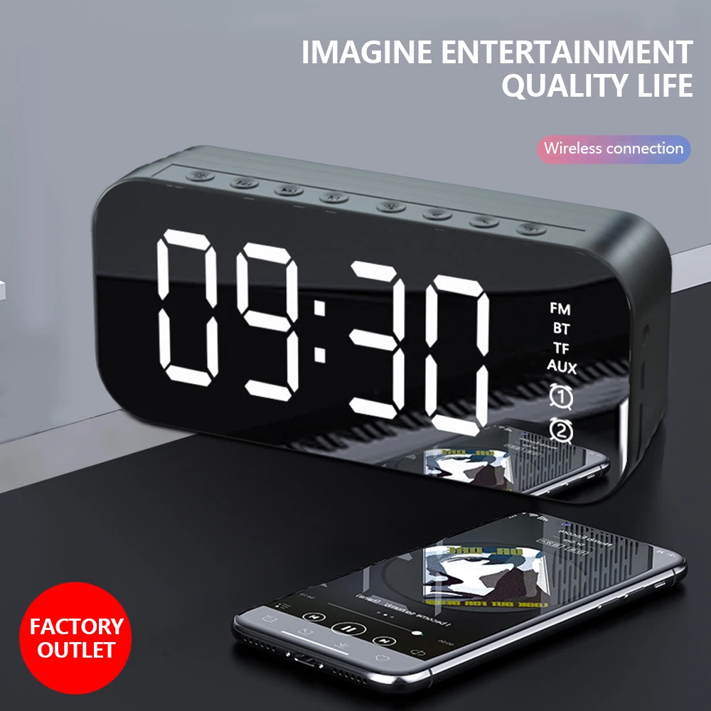 Многофункциональная Bluetooth Колонка Портативная Беспроводная колонка s бас стерео сабвуфер TF AUX MP3-плеер зеркальный будильник