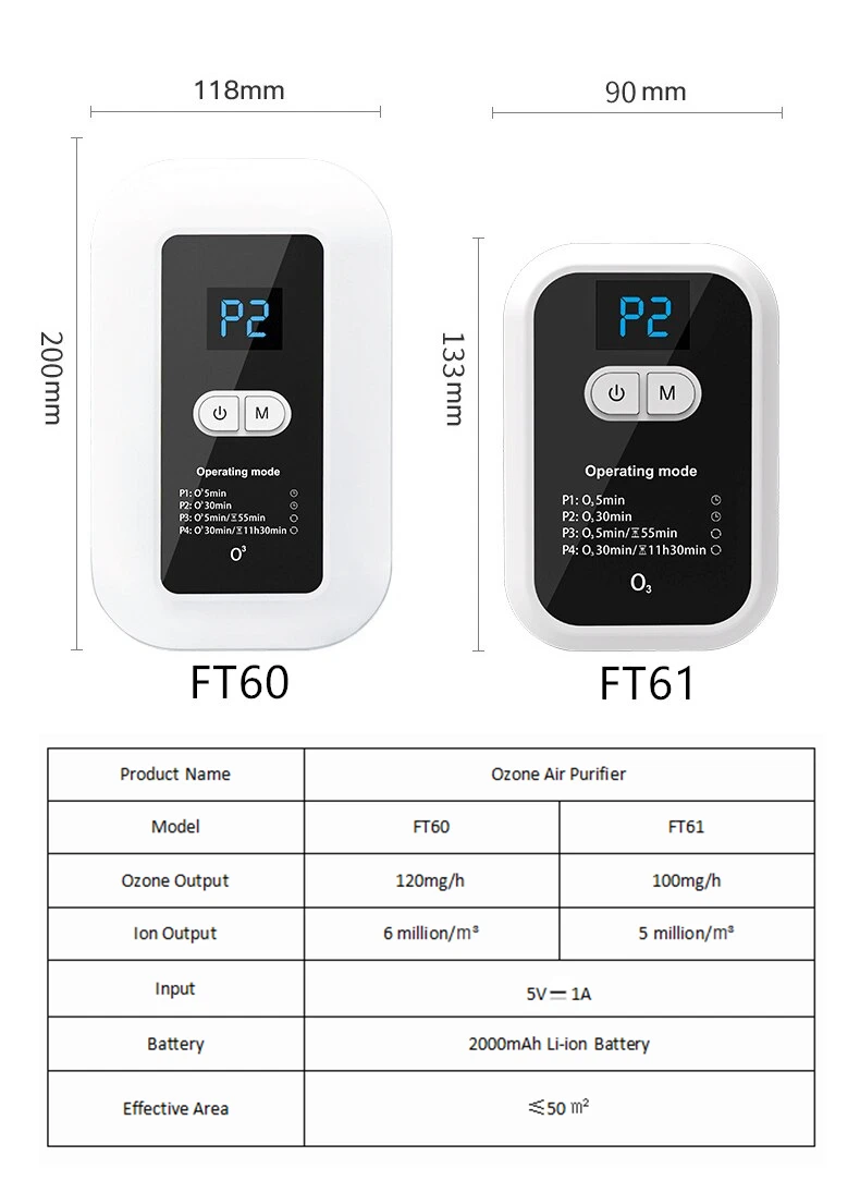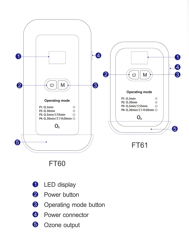 ● Генератор озона будет работать в течение 5 минут и останавливаться в течение 55 минут. Затем он повторит ход, пока он не будет выключен вручную.