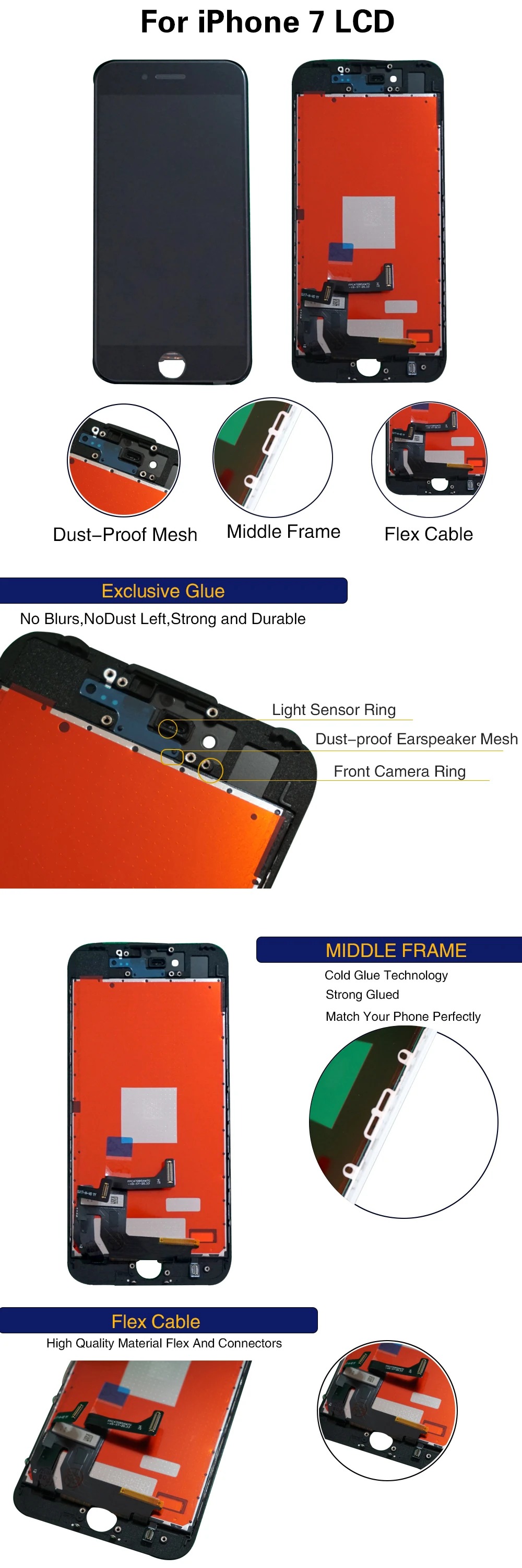 4,7 "100% протестированный Pantalla для iPhone 7 ЖК-дисплей экран 3D Сенсорная панель дигитайзер сборка для iPhone 7 ЖК-экран Замена + водонепроницаемая лента + стикер батареи + чехол + закаленное стекло + Инструменты