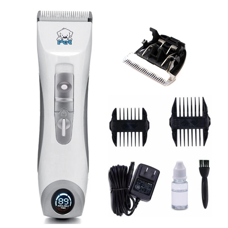 Мощный электрический триммер для волос для домашних животных, серебряная перезаряжаемая остроконечная машинка для стрижки собак, машинка для стрижки собак