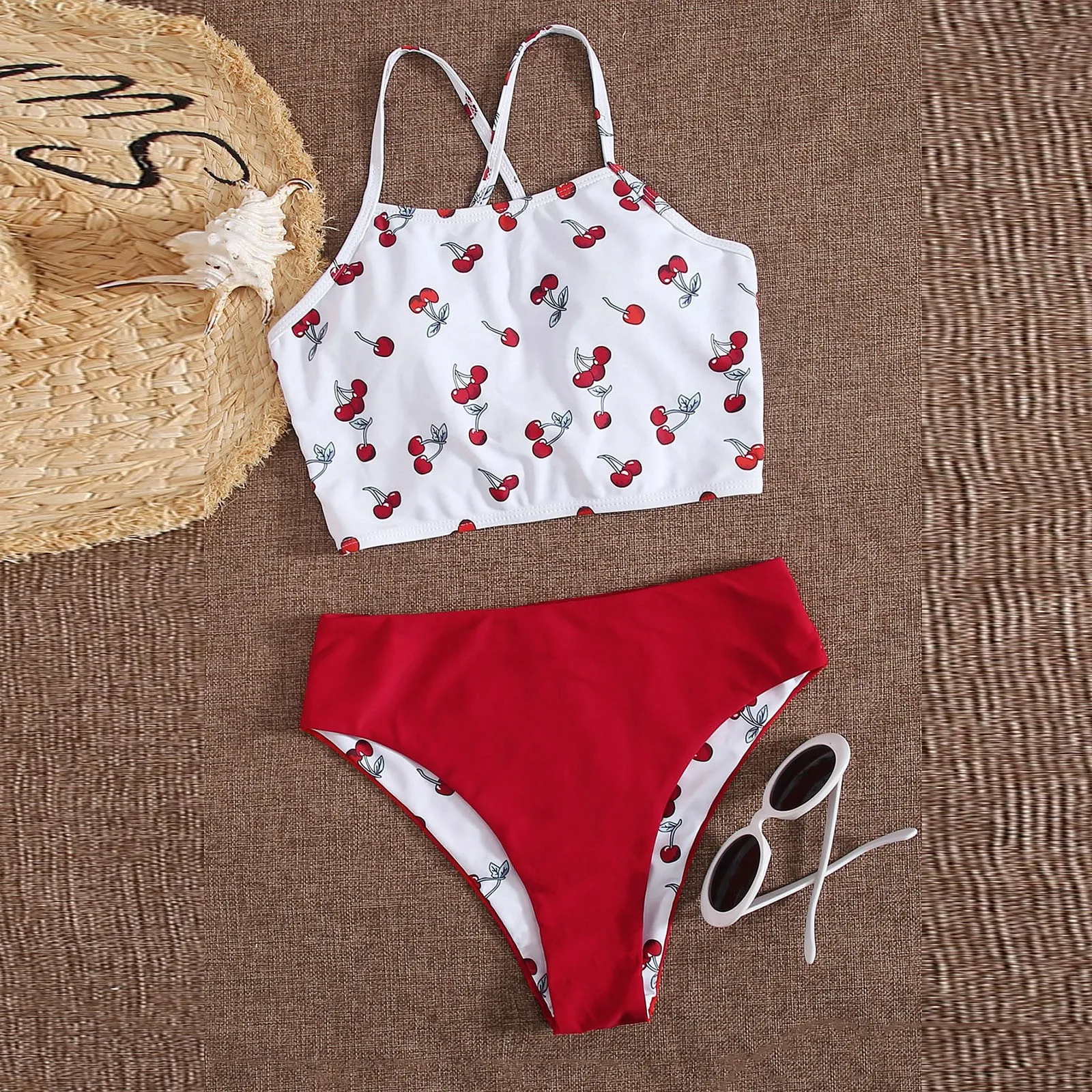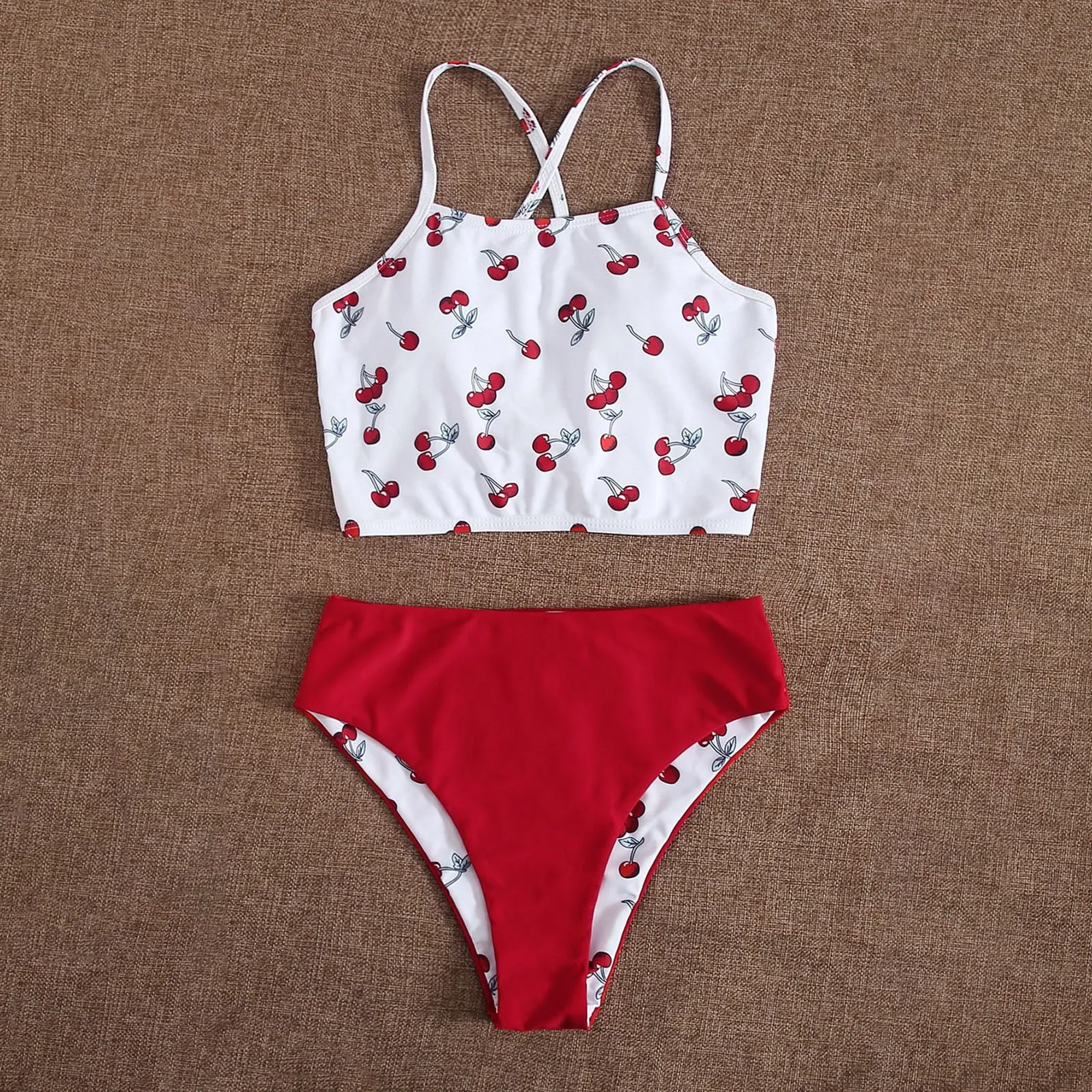 Женская одеждаВишняБюстгальтер с пуш-ап и принтом, пляжный комплект бикини, купальник, пляжная одежда