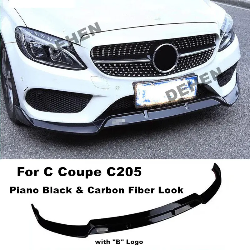 Передний бампер, комплект для губ, спойлер для Benz C Coupe C205 Sport 2015-2019, 2 двери, автомобильное пианино, черное углеродное волокно