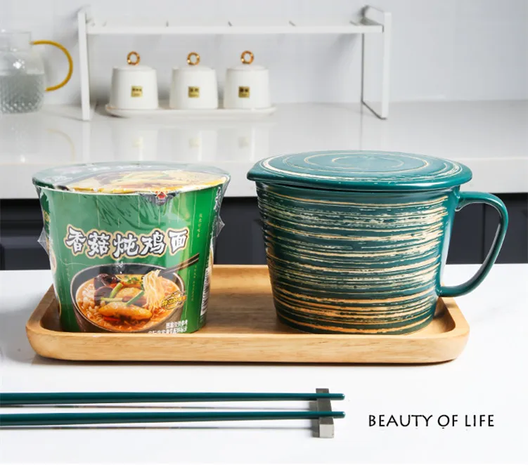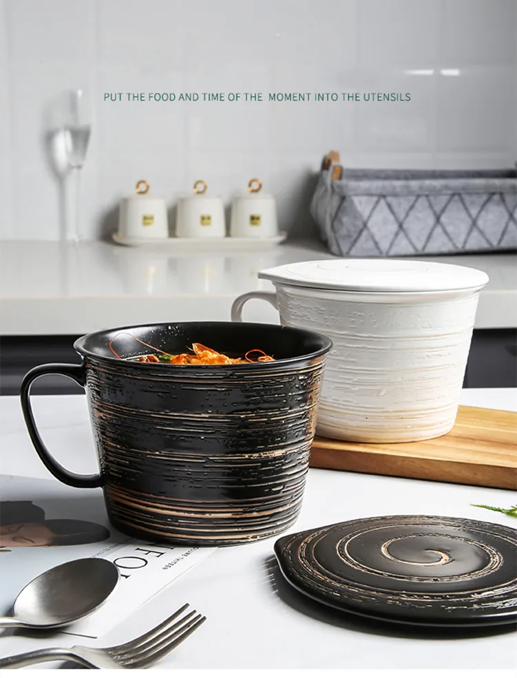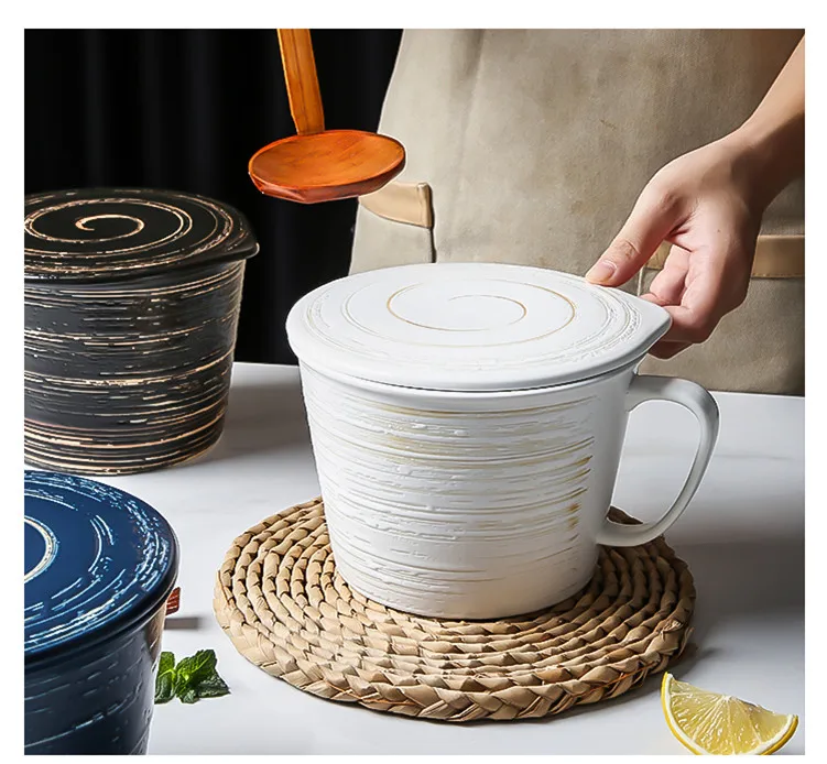 Японская креативная большая кружка для завтрака крупа керамическая миска для молока с крышкой посуда подходит для фруктового супа рамен миска и подарок для друзей