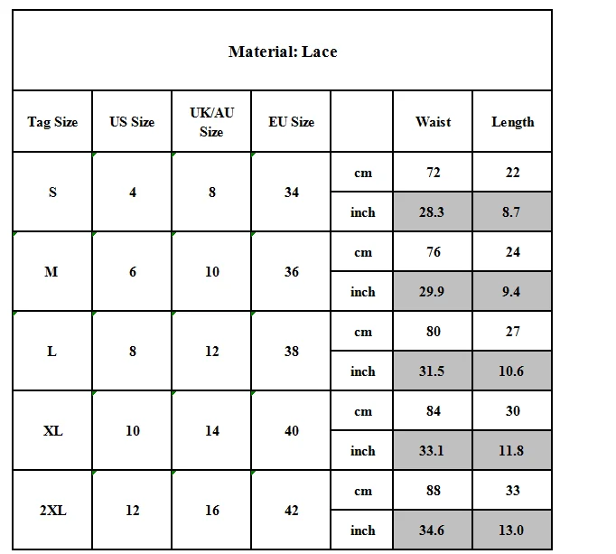 1. Размер: S/M/L/XL/2XL 2. Материал: кружево 3. Узор: однотонный 4. Стиль: сексуальный эротический, открытый промежность 5. Состояние: 100% новый 6. Товар включает: 1 * трусики