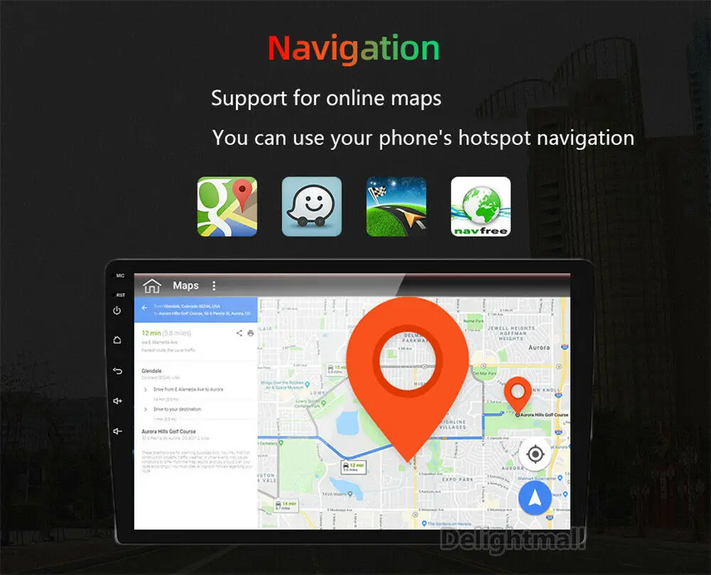 9. Поддержка GPS карт, таких как Google Online MapYandex.navi / Waze on Line / Sygic...