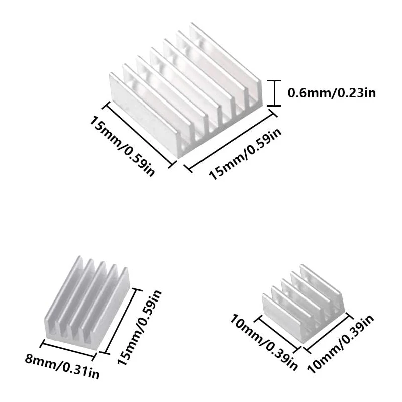 Эти радиаторы из чистого алюминия включают в себя термоленту, которая эффективно передает тепло на радиатор, обеспечивая дополнительное охлаждение ИС.