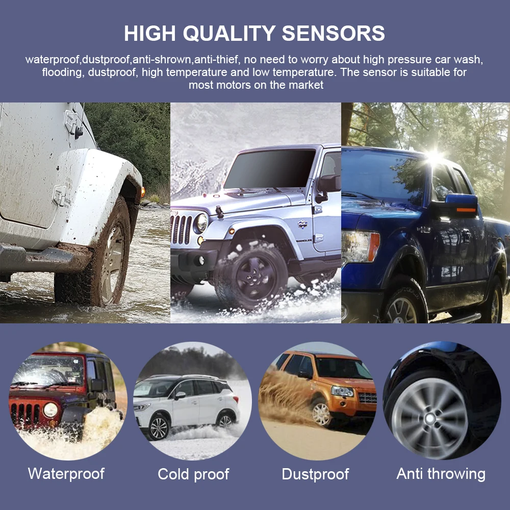 Working Temperature: -40℃-125℃Working Frequency: 433.92MHZBattery Model: CR2450Battery Life: 4-5 YearsBattery Replaceable: NOTire monitoring range value: 0 bar-8 bar /0-116psiTemperature Accuracy: ±3℃Transmission Power: <8dBmExternal Sensor:Working Temperature: -25℃-85℃Working Frequency: 433.92MHZBattery Model: CR1632Battery Life: 1-2 YearsBattery Replaceable: YESTire Monitoring Range Value: 0 bar-8bar /0-116psiTemperature Accuracy: ±3℃Transmission Power: <8dBm