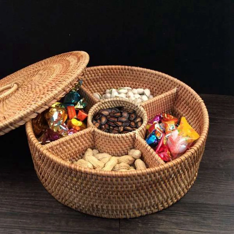 Корзина для фруктовых коробок из ротанга для хранения ключей, посылка для новогодней бумаги, разное, ручная работа, круглая прямоугольная крышка, сухофрукты