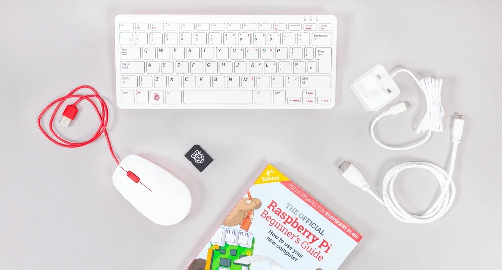 Персональный компьютерный набор поставляется с мышью, блоком питания, кабелем micro HDMI-HDMI и предварительно загруженной SD-картой с ОС Raspberry Pi. Существует также Официальное руководство для начинающих Raspberry Pi, которое поможет вам получить максимум от вашего нового компьютера.
