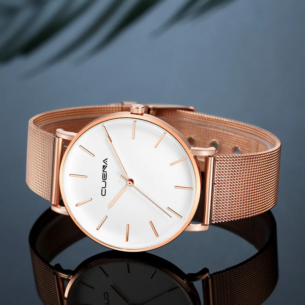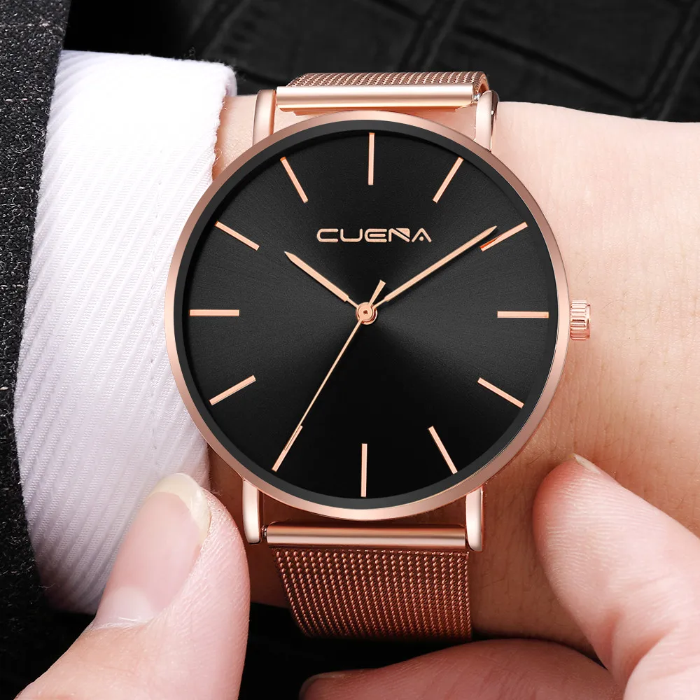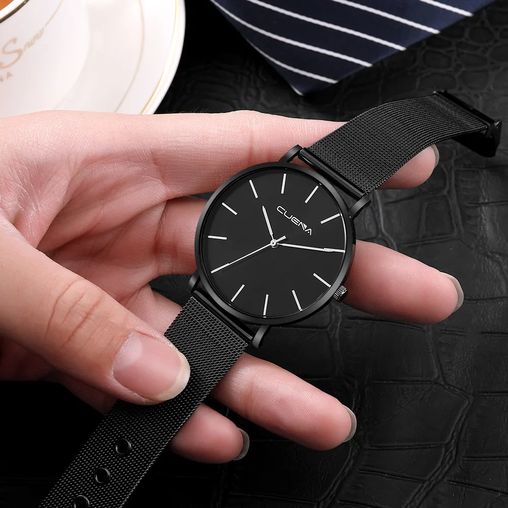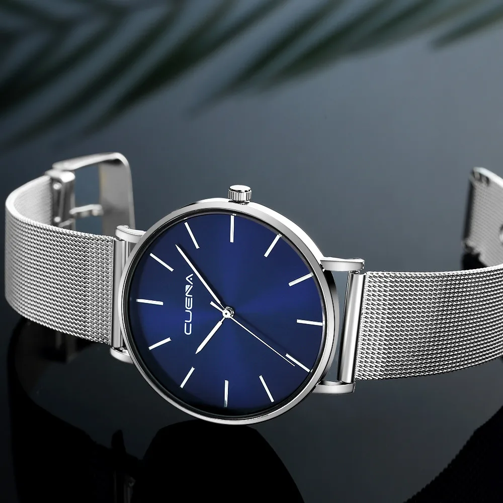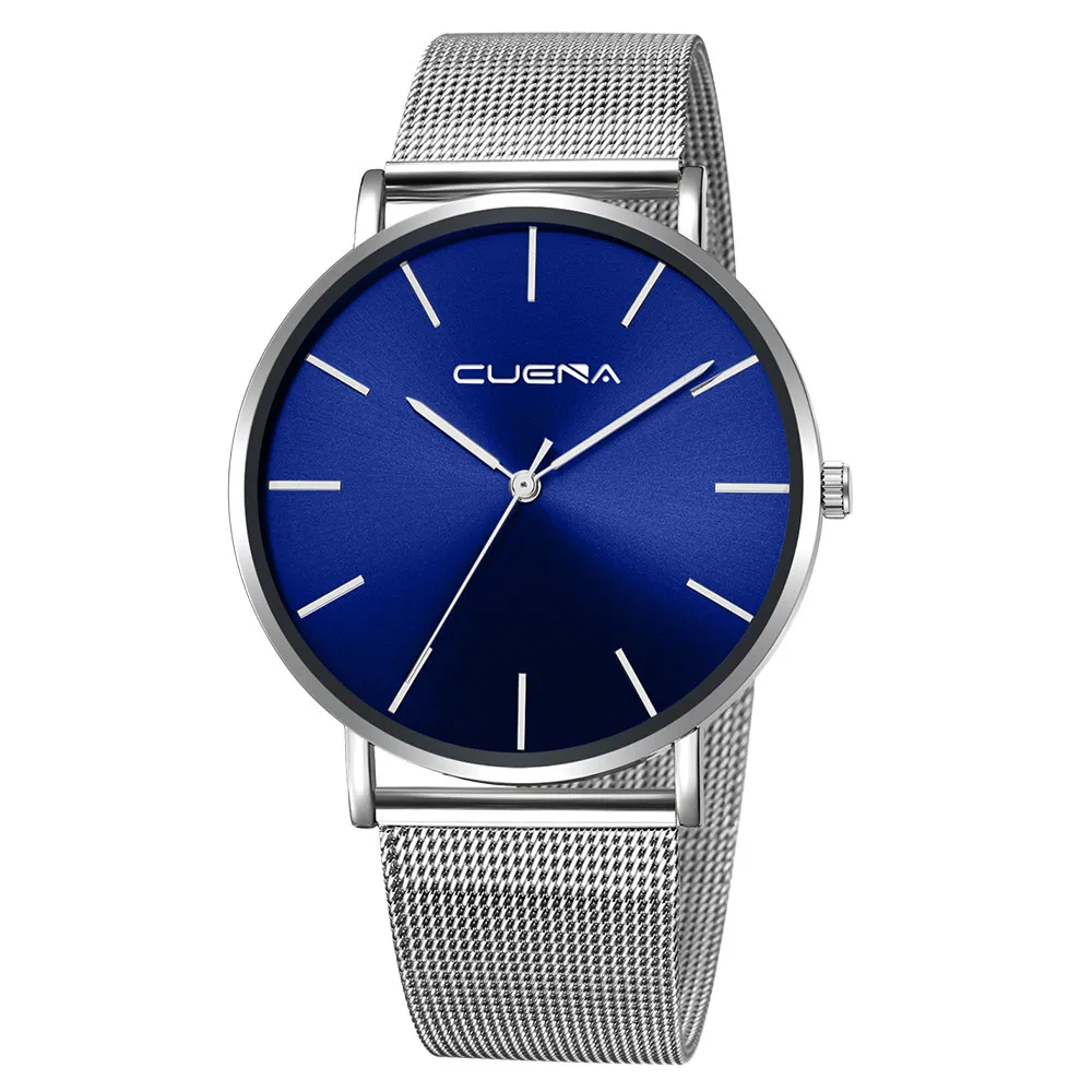 CUENA роскошные часы мужские сетчатые ультра-тонкие кварцевые наручные часы из нержавеющей стали мужские часы reloj hombre relogio masculino Бесплатная доставка