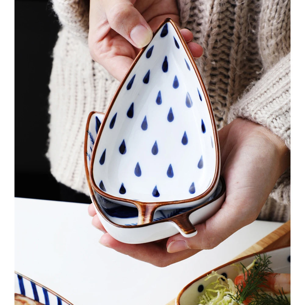 Креативная чаша для приправ в форме листа, керамические многофункциональные маленькие тарелки, закуски, блюдо, соус, кухонные блюда, суши, торт, лоток 45