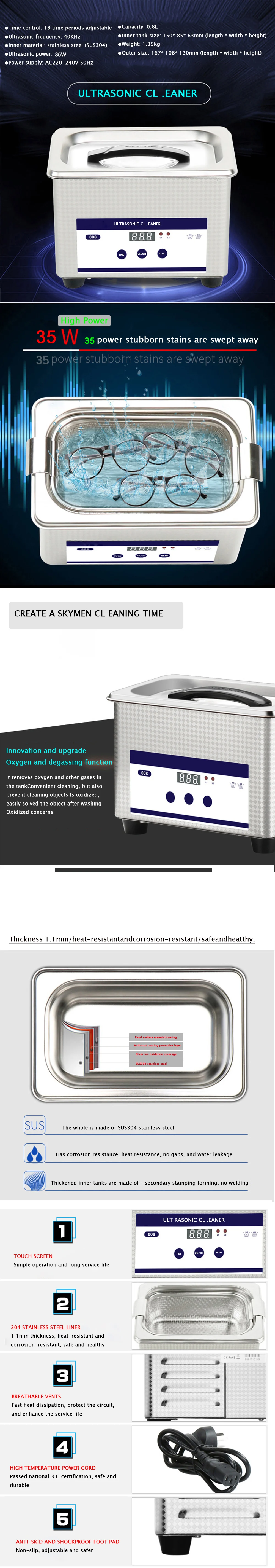 Ультразвуковой очиститель 0,8Л, 50 Вт, ультразвуковая ванна, 40 кГц, дегазация, используется для золотых баров, ювелирных изделий, очков, Нефритового ожерелья, оксида, антикоррозийная машина для очистки масла