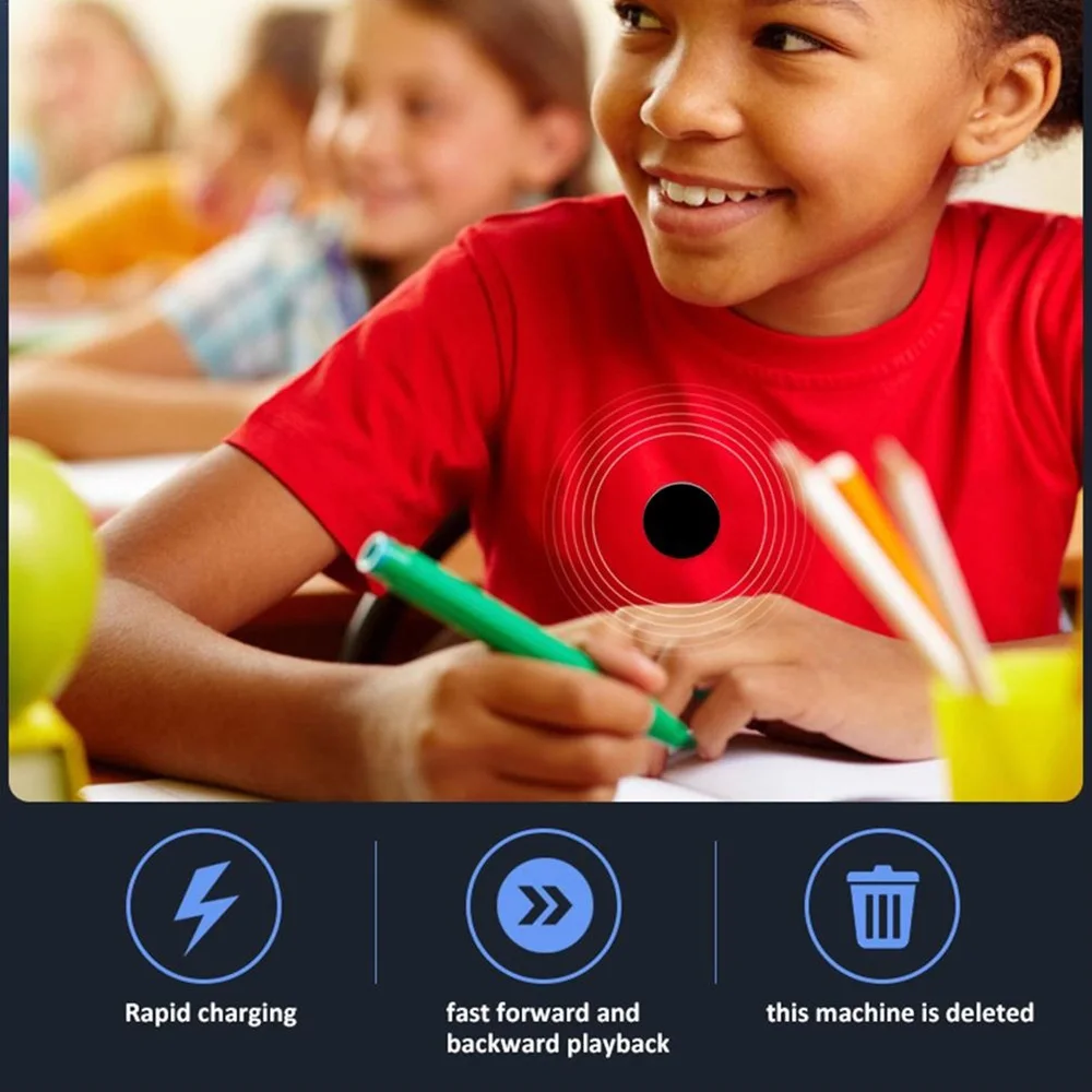 Описание Запись в формате HD, нулевой уровень шума. Автоматическое выключение позволяет сохранить запись. HIFI MP3 музыка, полностью заряжается за 30 минут, непрерывная запись в течение 38 часов. Бесшумной записи, без светильник дисплей, отсутствие вибрации. Быстрая зарядка, быстрое движение вперед, движение задним ходом воспроизведения. Время установки права. Применимые места: школьные сумки, ошейники, ящики, внутри автомобиля и т. Д. Простой дизайн делает этот аудиомагнитофон легким и удобным в эксплуатации. Характеристики: Цвет: черный. Объем памяти: 8G/16G/32G.(опционально) Материал корпуса: медный сплав с ЧПУ. Формат записи: WAV. Время записи: 15-17 часов непрерывной записи. Время работы в режиме ожидания: 68 часов. Режим записи: запись одним щелчком, сохранение одним щелчком, воспроизведение одним щелчком/пауза. Микрофон: встроенный HD микрофон. Частота дискретизации: 48 кГц. Количество цифр: 192 кбит/с. Батарея: встроенная Экологически чистая литиевая батарея. USB: mini USB. Размеры: около 3,5*3,5*1 см. Примечание: Из–за разных компьютерных разрешений может быть небольшое цветовое искажение. Возможны незначительные погрешности из-за различных ручных измерений. Посылка включает в себя: 1 Диктофон MP3. 1 x наушники. 1 х USB кабель. 1 х руководство на английском языке.