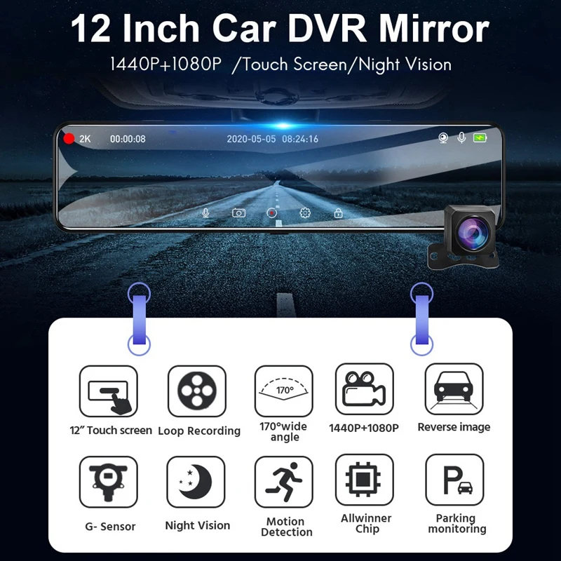 Разрешение 1080P четкое изображение заднего вида, а линия лучше, чем изображения заднего вида автомобиля, более безопасная. Запись маршрута вождения, местоположения, скорости удобно на gps-проигрывателе. 12-дюймовый полноэкранный пресс обеспечивает Кристальное изображение без каких-либо задержек. Очень четкий и плавный показ изображения, как поток, протекающий на превосходном WDR и автоматическом регулировании яркости потокового зеркала.