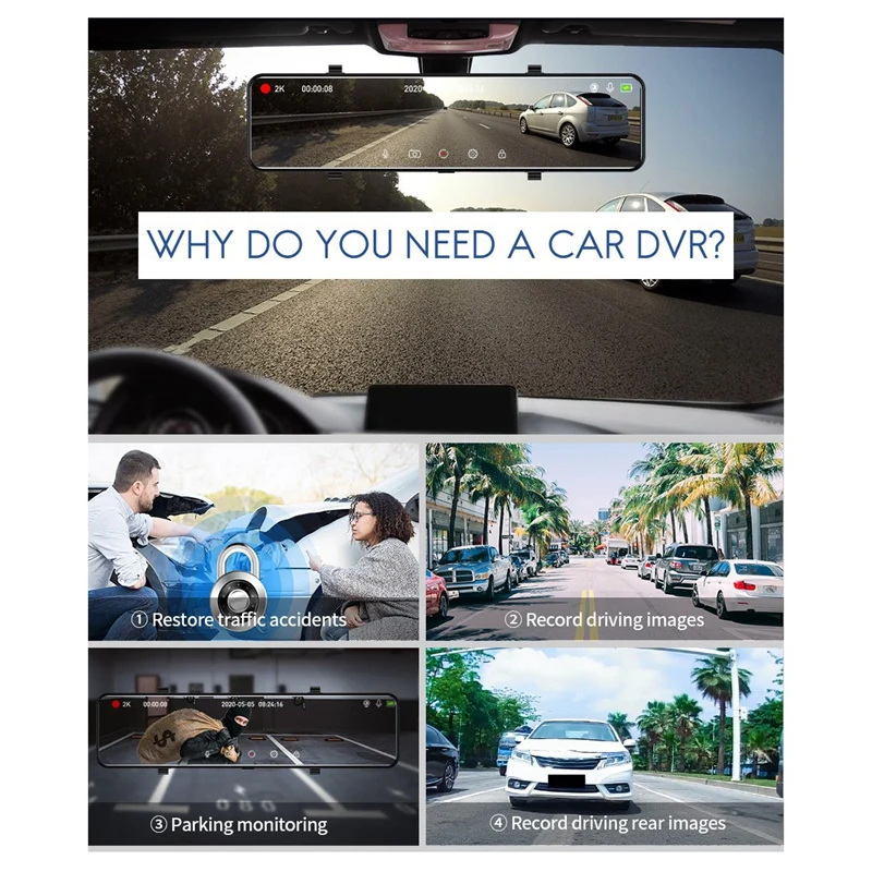 12 дюймов нажмите Автомобильный видеорегистратор 2K зеркало видеорегистратор IMX335 двойной объектив Поддержка GPS 1080P задняя камера