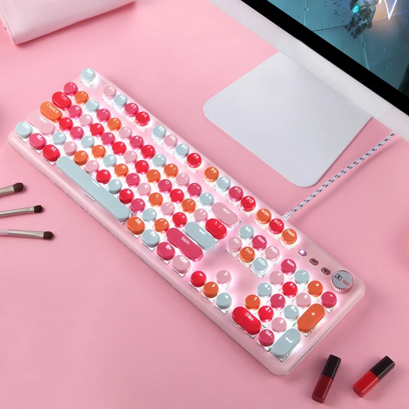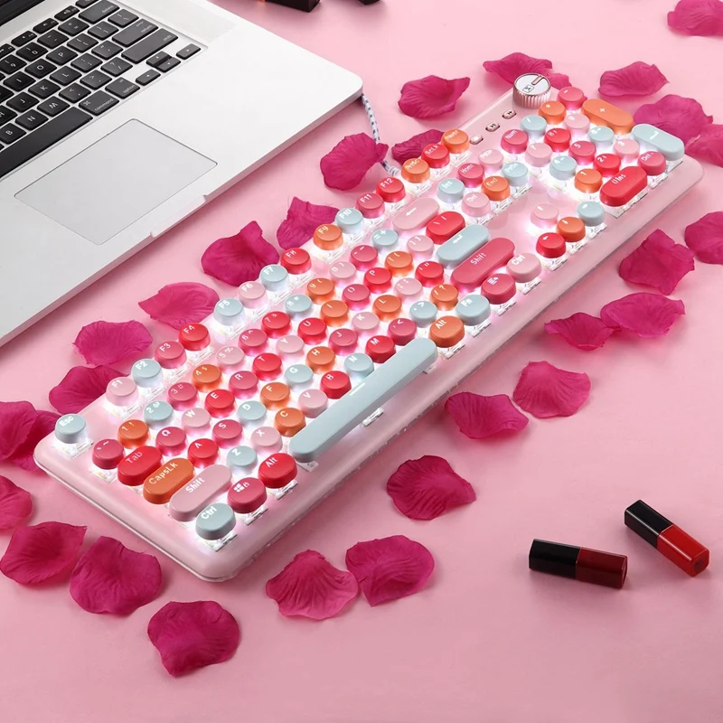 Смешанная цветная версия K520 Водонепроницаемая настоящая механическая клавиатура для губной помады красная панк ретро Клавиатура для ноутбука