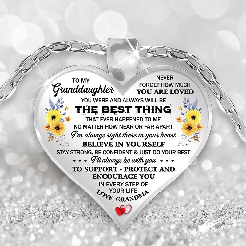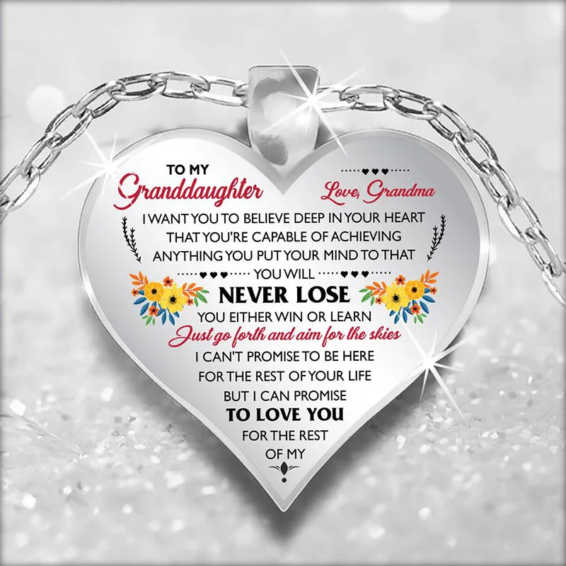 Модное ожерелье с цветком для моей внучки, серебряный цвет, кулон с сердечком, Вдохновляющие ожерелья, ювелирные изделия, подарки от бабушки