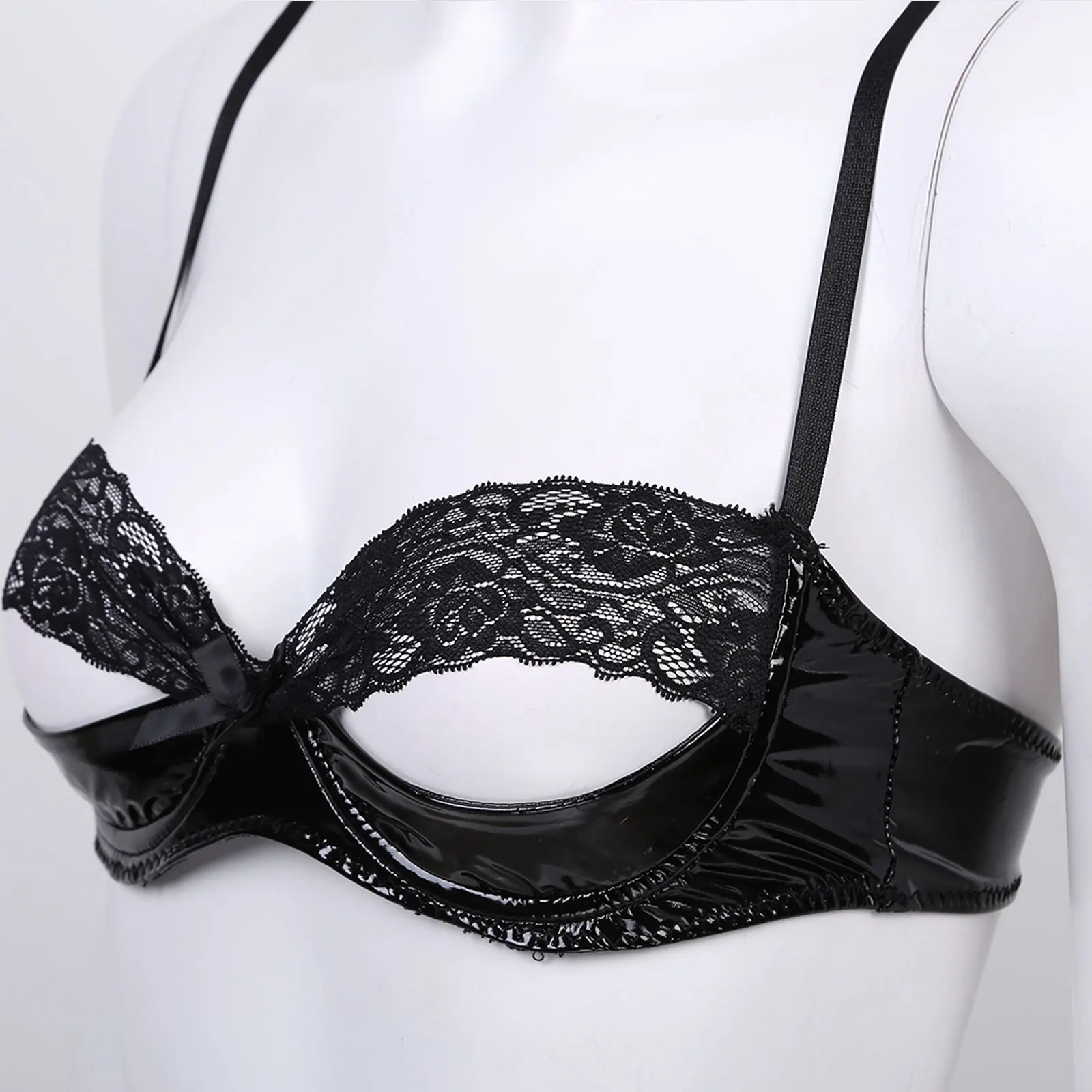 Женский бюстгальтер из лакированной кожи wetlook, на косточках и без подкладки.