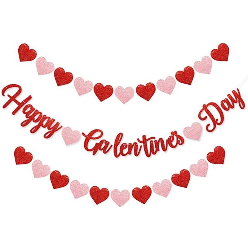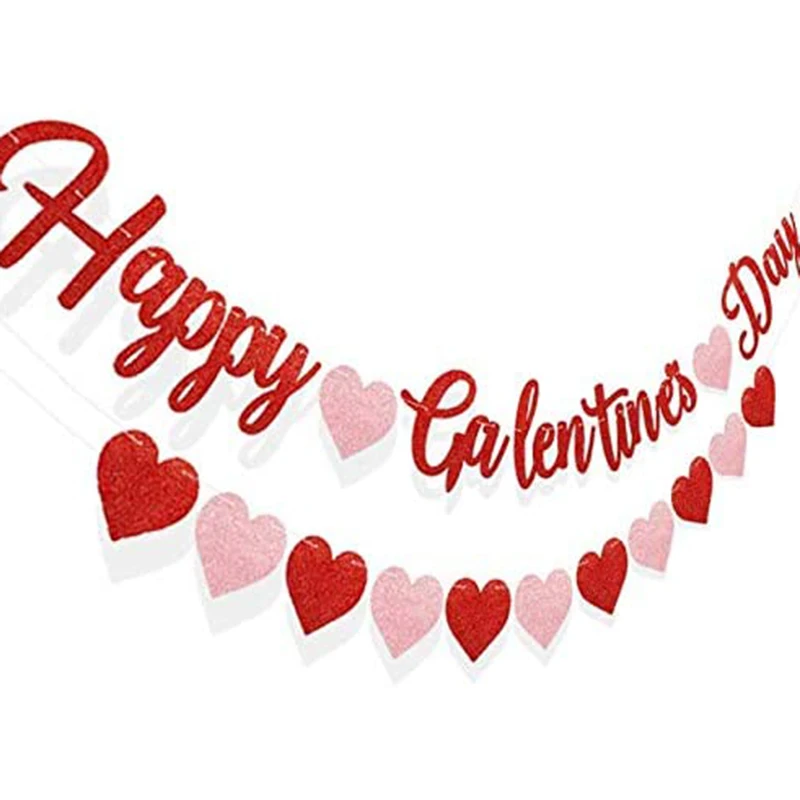 Красивый и крепкий баннер Happy Galentine's day Общая длина составляет около 10 футов, а буквы в высоту или ширину зависят от букв и очаровательных Валентин войлочных гирлянды сердце Общая длина составляет 20 футов (2 веревки).