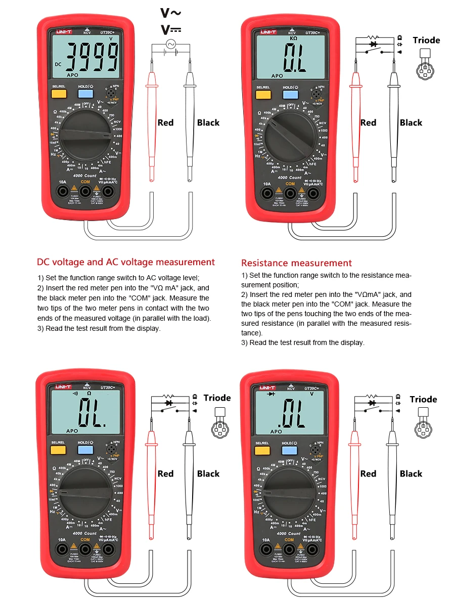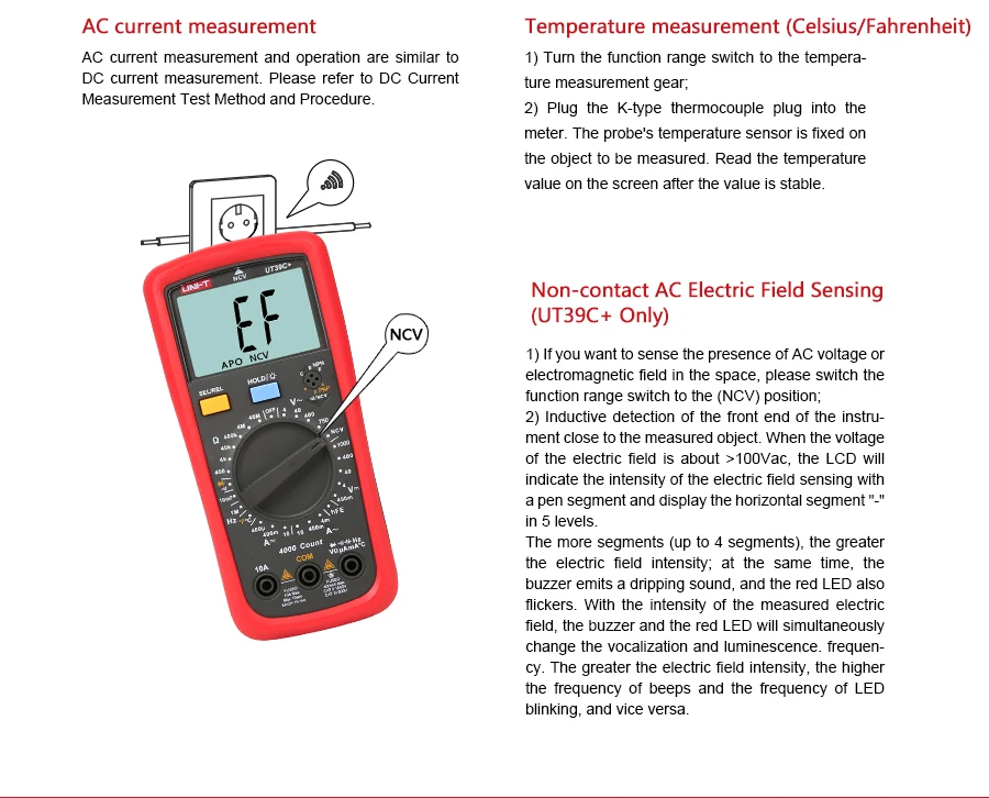 Напряжение переменного тока:400мв/4В/40В/400v/1000v