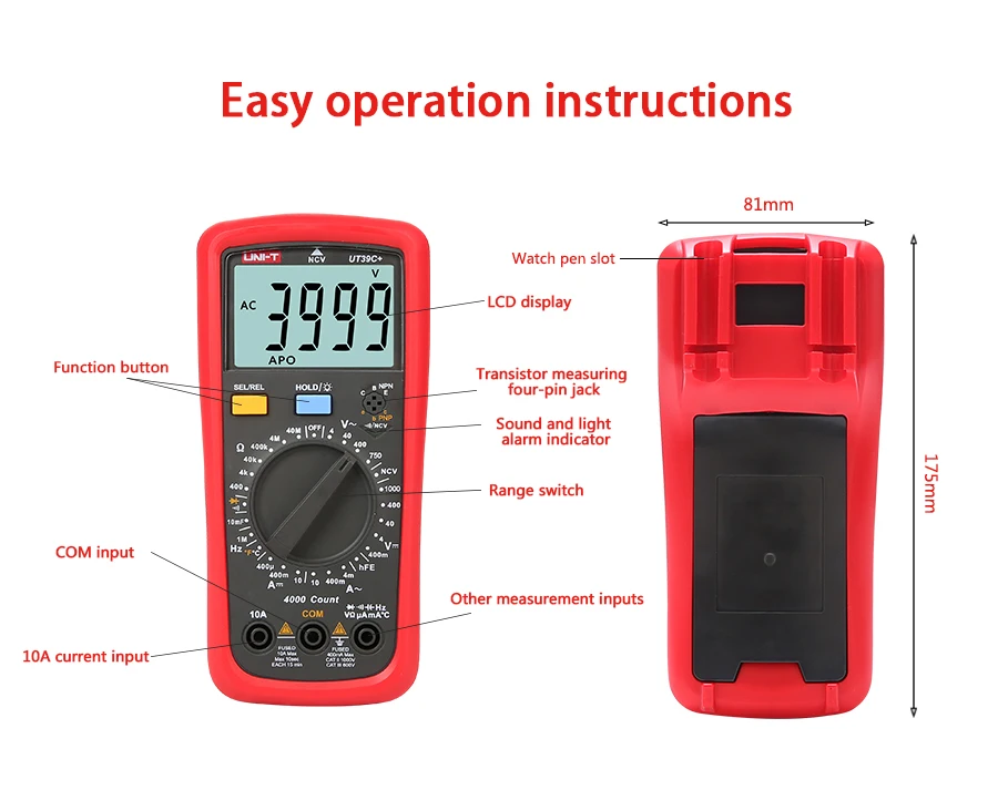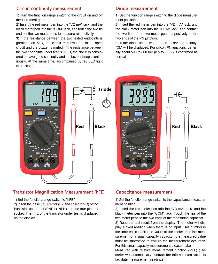 Диапазон измерения емкости:4nF/400nF/4 мкФ/400 мкФ/4mF/