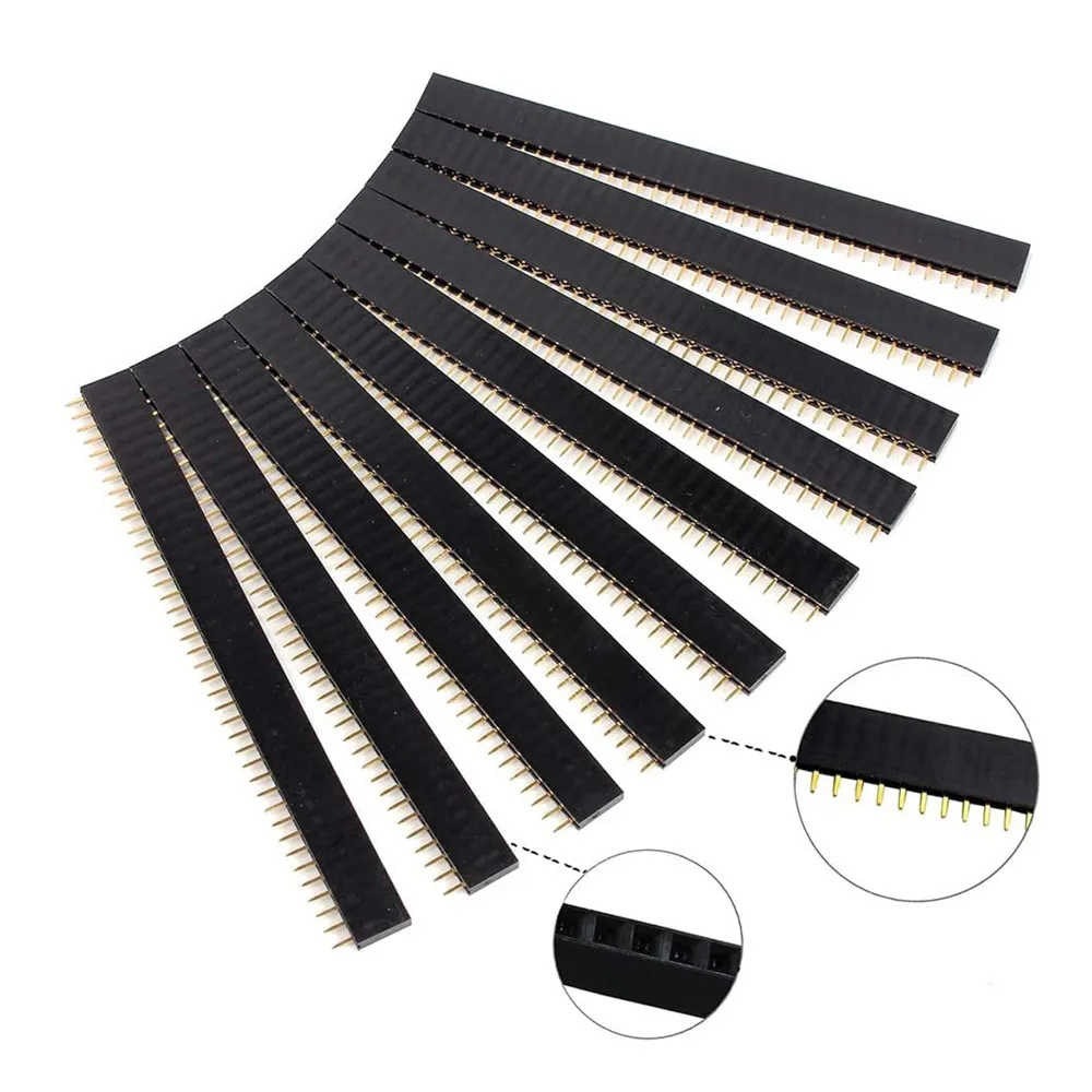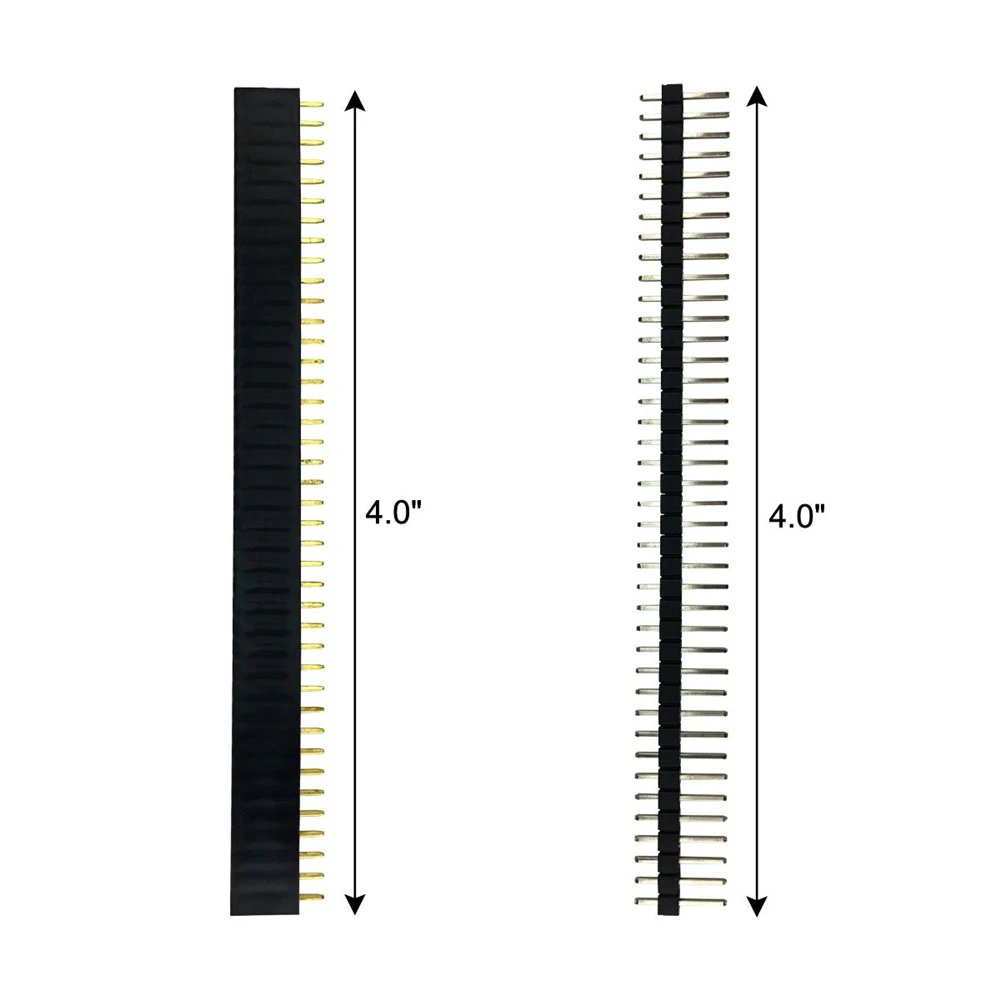 1. Spacing: 2.54mm 2. Gender of Connector: Male/Female 3. Number of Pins: 40Pin 4. Type of Row: Single-Row 5.Color:Black 6.Material:Plastic+iron