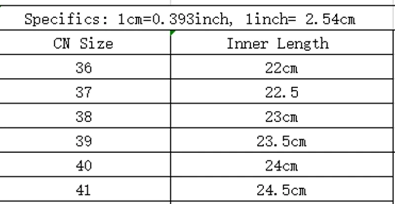 Внимание:1. Может наблюдаться небольшая разница в отображении цветов из-за настроек монитора компьютера.2. Из-за разницы в методе измерения может присутствовать замеры сделаны вручную, поэтому возможны отклонения в размере на 1-3 см (1 см = 0,39 дюйма). Благодарим за понимание!3. Наш размер не является стандартным Европейским размером, и он равен только длине стопы!4. Стандартные размеры разных стран и разных производителей отличаются, длина вашей стопы является единственным критерием для выбора размера.